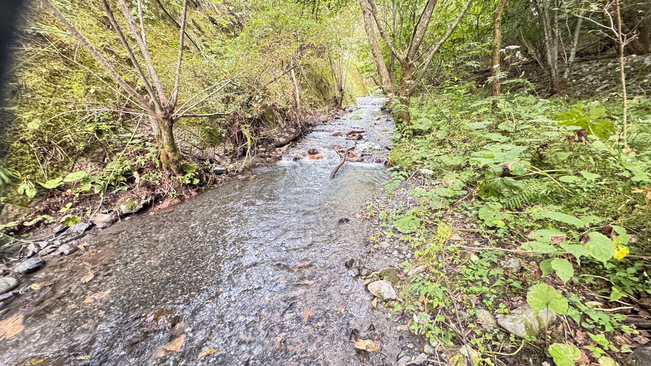 小さい沢ですが魚影濃く