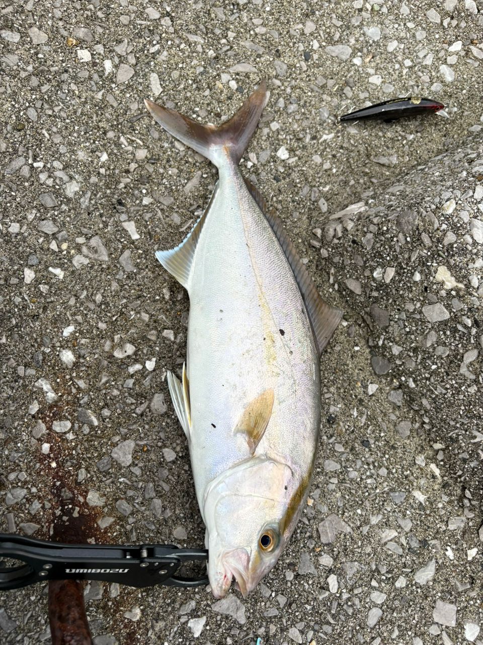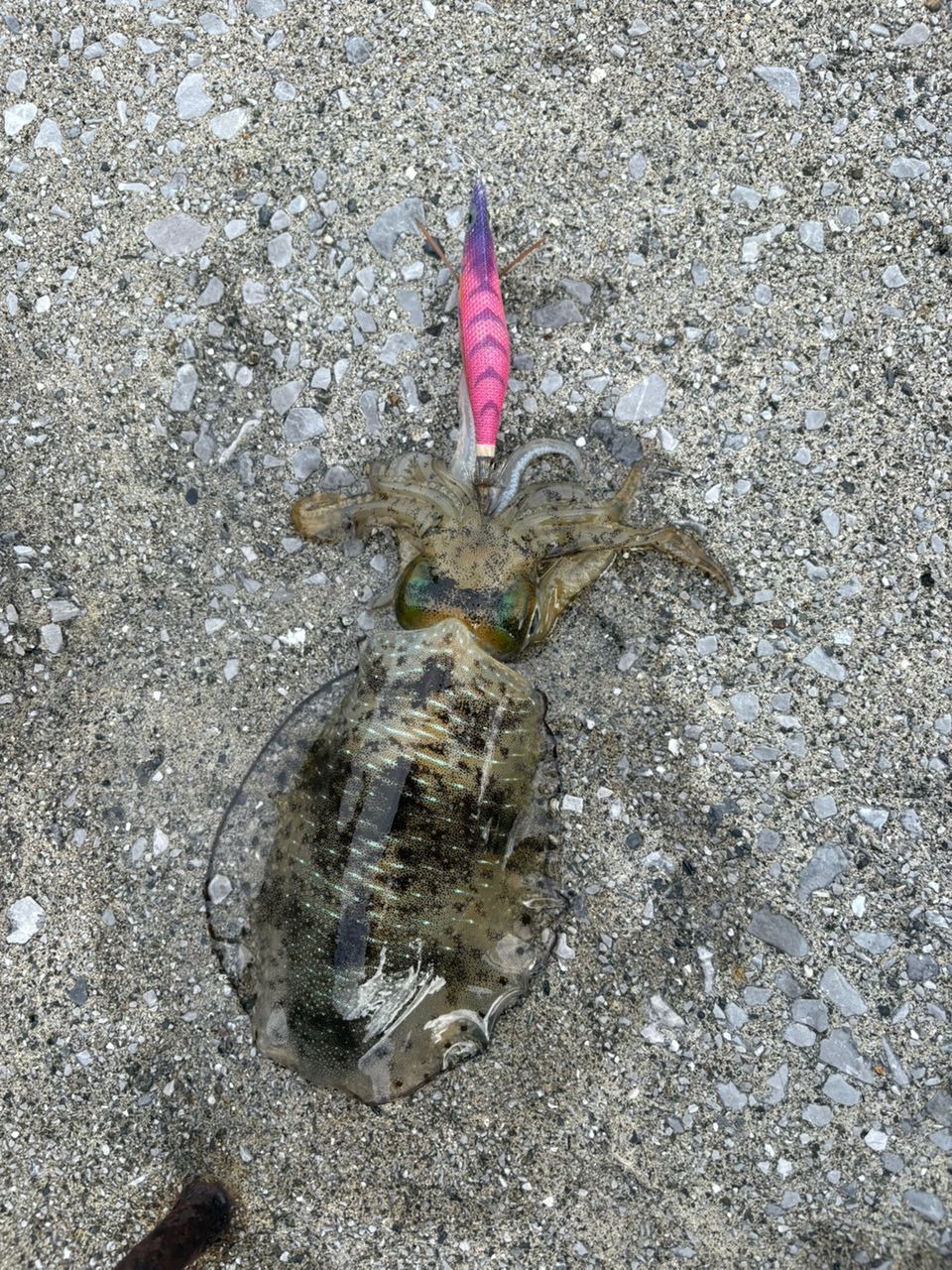 トップもジグも不発で、何となく投げたVJのフォールで久々のネイリ🐟 タックル鱗付けできたし満足。 しかしイカは由良まで下っても明浜より小さくて残念