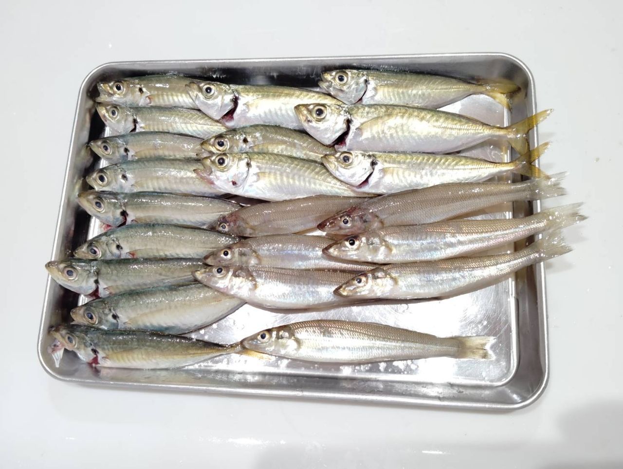 アジ15匹・キス7匹・サッパ4匹・カタクチイワシ1匹・エイ2匹。