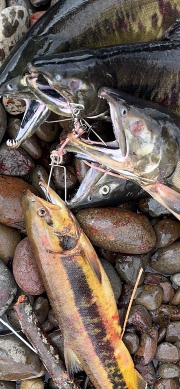 ある河口で メスのお腹割いて中だけとって鮭自体をぶなげてるところを見てしまいました。そんなことしてまで 釣らんでくれ…😓お店でイクラだけ買ってくれ…