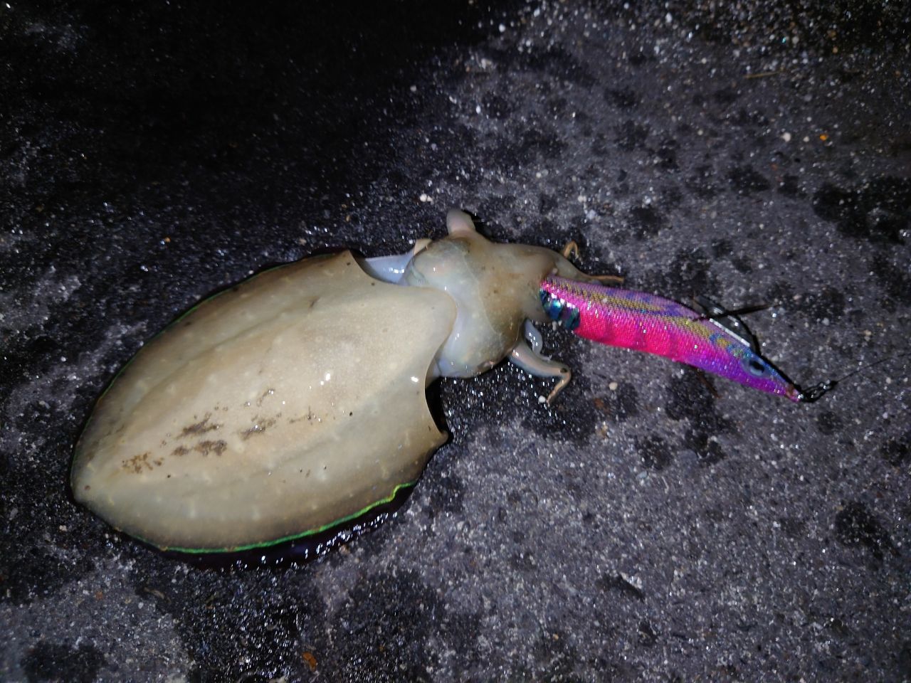 久しぶりのエギング。まだ小さいですが、活性は高く2.5号より3.0号に反応が良かったです。