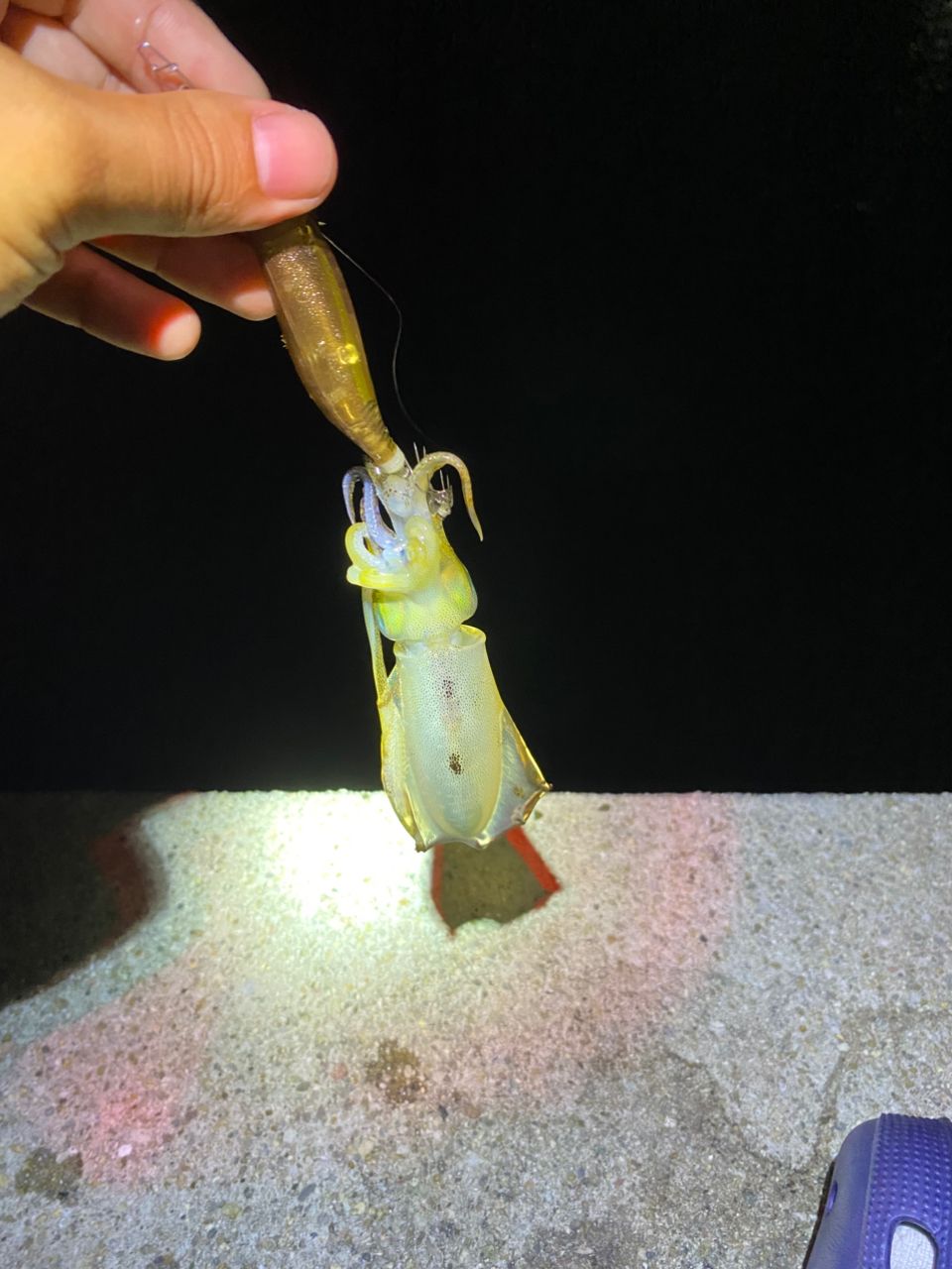 場所移動し、エギングに切り替え。なんとか釣れました。エギサイズは流石にリリース。