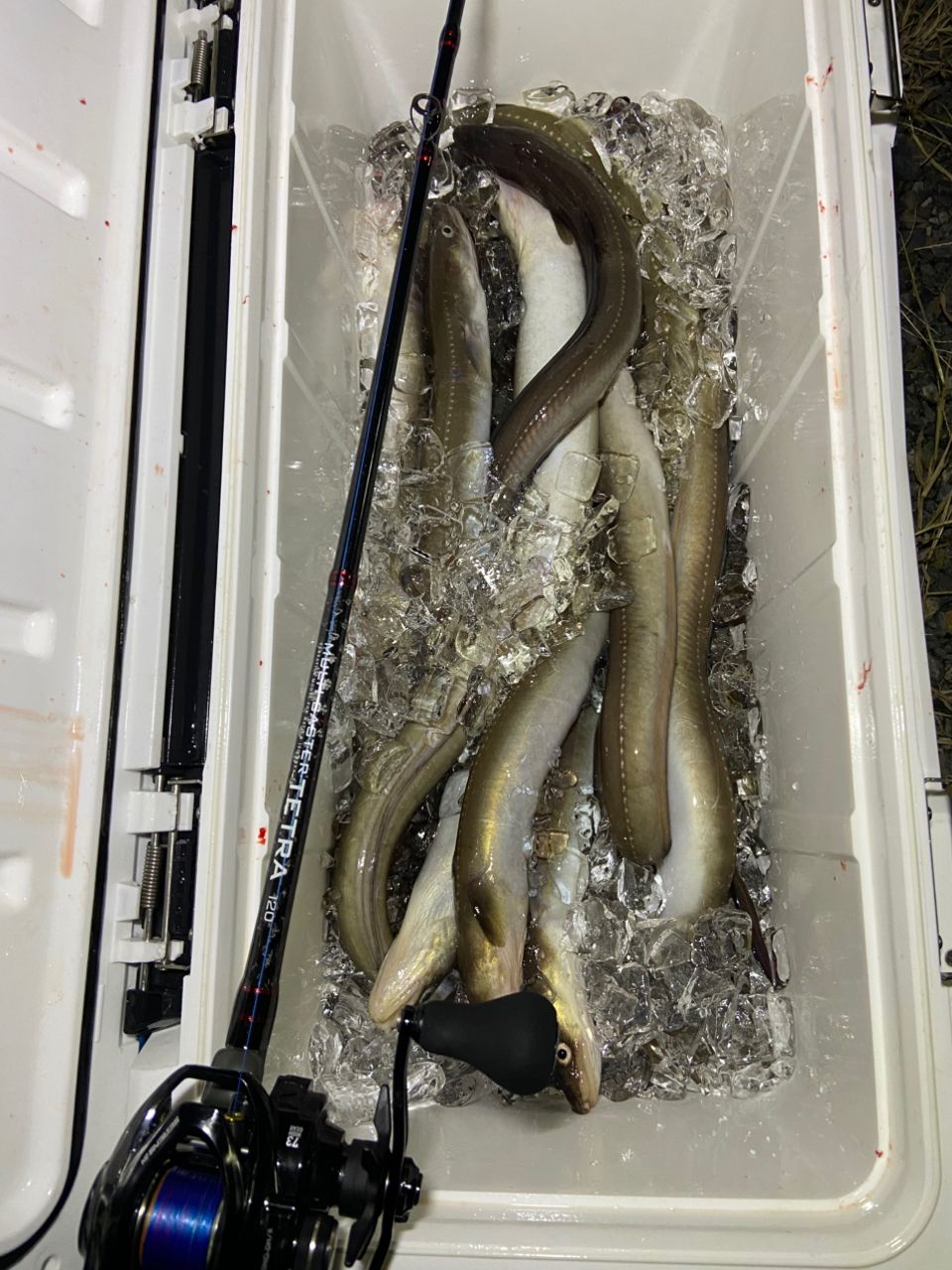 夕まづめからバタバタと釣れダブルもあり、暗くなってからは当たりは減るものの小突いてる時の違和感に気づければ釣れる!型も良かったです!2時間ほどのショート便でしたが良型ばかりの17本でした!マルチキャスターテトラ穴釣り用ですが120cmと短く合わせも遅れずしっかりかけれるので船アナゴにぴったりでした!