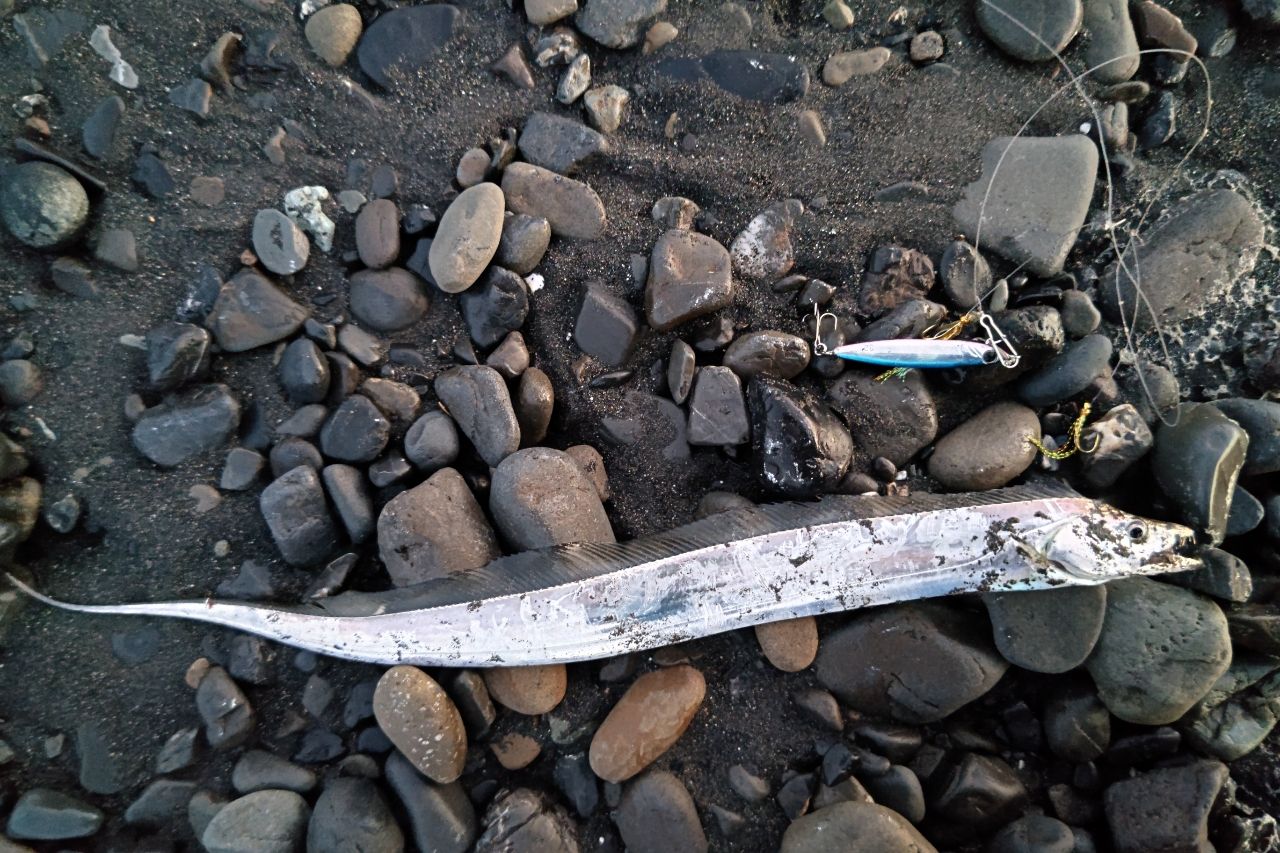 小さいですが、指2本のタチウオが2匹釣れました