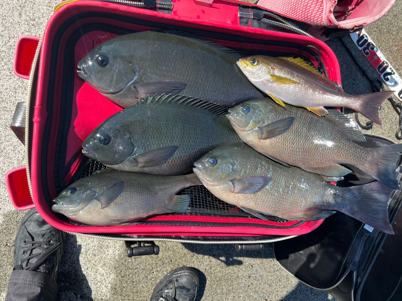 30メートルくらい投げたところでタナ1ヒロ、じわじわとウキが入っていくクチブトらしい当たりを楽しめました✨
