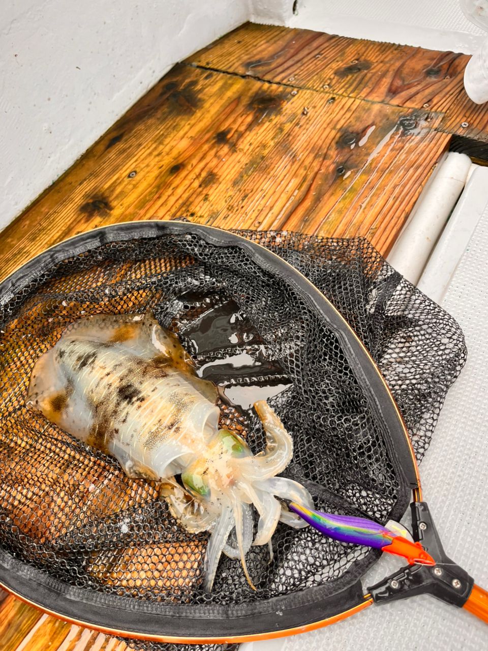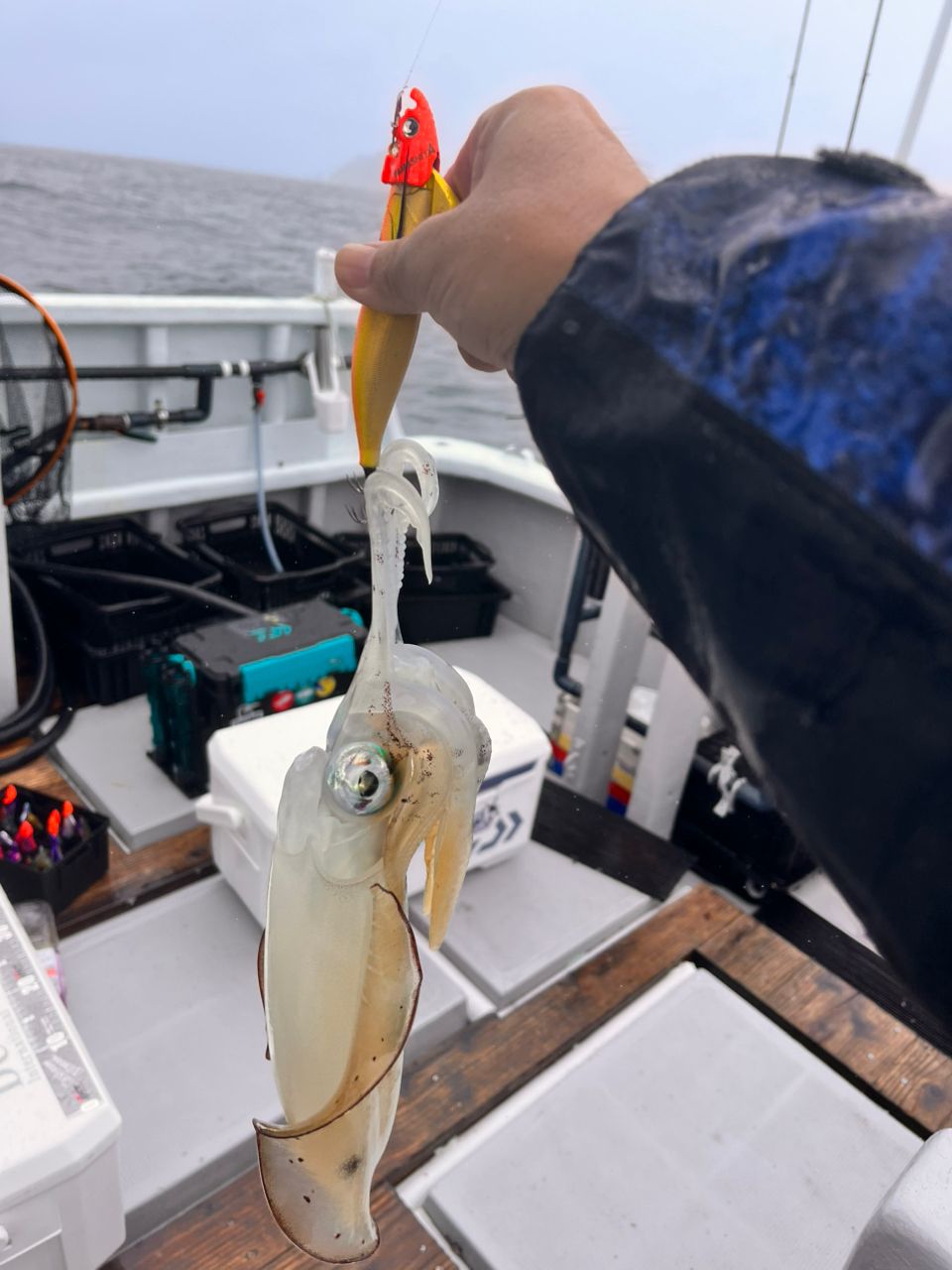 隣のO氏は船長ミッションのGEECRACKローハイド紫煙で釣る、を最後のポイントで達成!やはり主役の器、持ってましたね