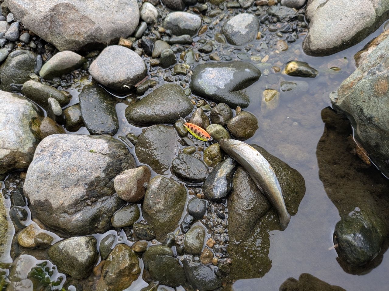 重さを変えて色々練習してたらハスが数匹釣れた。
