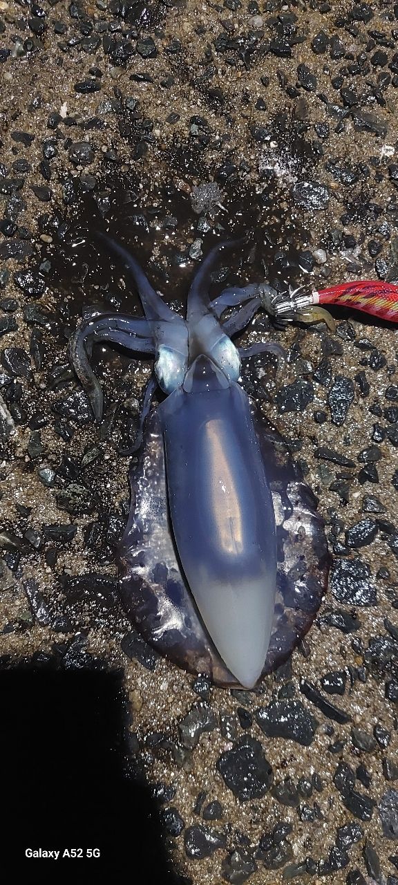 途中見えイカがいたのでエギングするとすぐ釣れました。