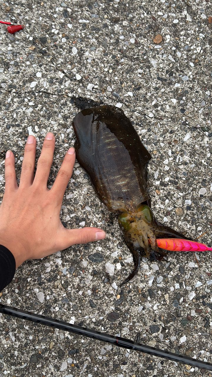 朝まず目にピンクのエギに変えた瞬間来ました。これからエギング勉強します。