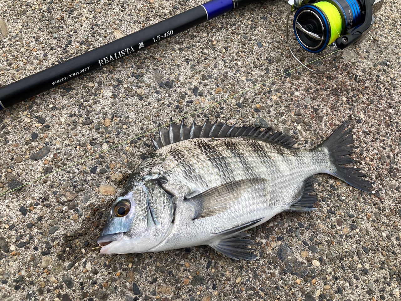 ウキフカセ釣りで久々にクロダイ釣れました!ファイト中はアイゴかと思いましたが、浮いてきた魚体がギラっと銀色に光った時には喜びのあまり変な声が出そうになりました😇笑