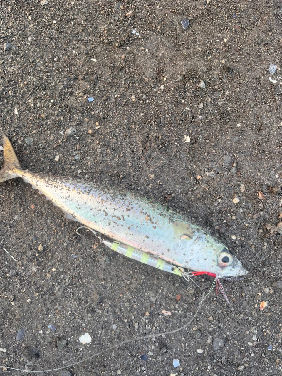 サバでは無さそう、、、が上がって来ない!手前までは寄ってるはずなのに姿が見えない🫥 と手前まできて足元に潜り込んだ😳