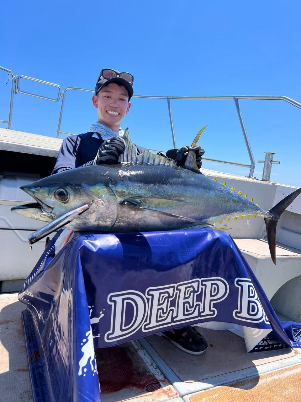 高まる気持ちを抑えつつ、キハダが跳ねた進行方向にビーコン180をキャスト。2ジャーク目バッコーンと水面大爆発💥💥