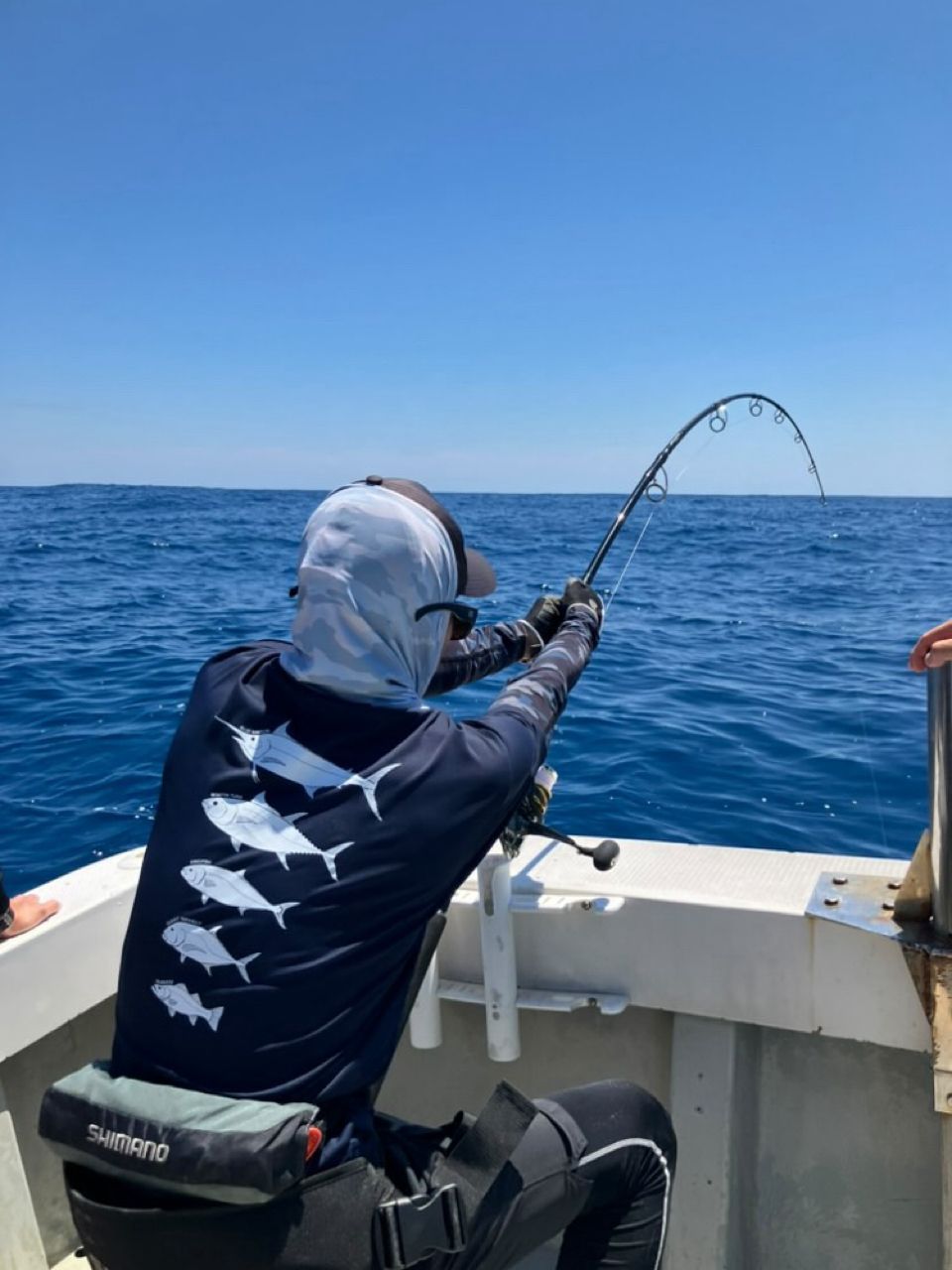 しっかりと掛かったようでここから竿を銀バルに入れて勝負。 ここでGIGAS MGX-∞S “G.T.Gorilla”の最大の武器である強力なロッドパワーでグイグイ手元に寄せる。めちゃくちゃ綺麗に曲がってました。ベラに走って行ったりとヒヤヒヤな場面もありましたが、なんとか回避。無事に128cm30kgのキハダマグロをキャッチすることができました❗️ルアーの食い方もド派手にハーモニカ喰い‼️