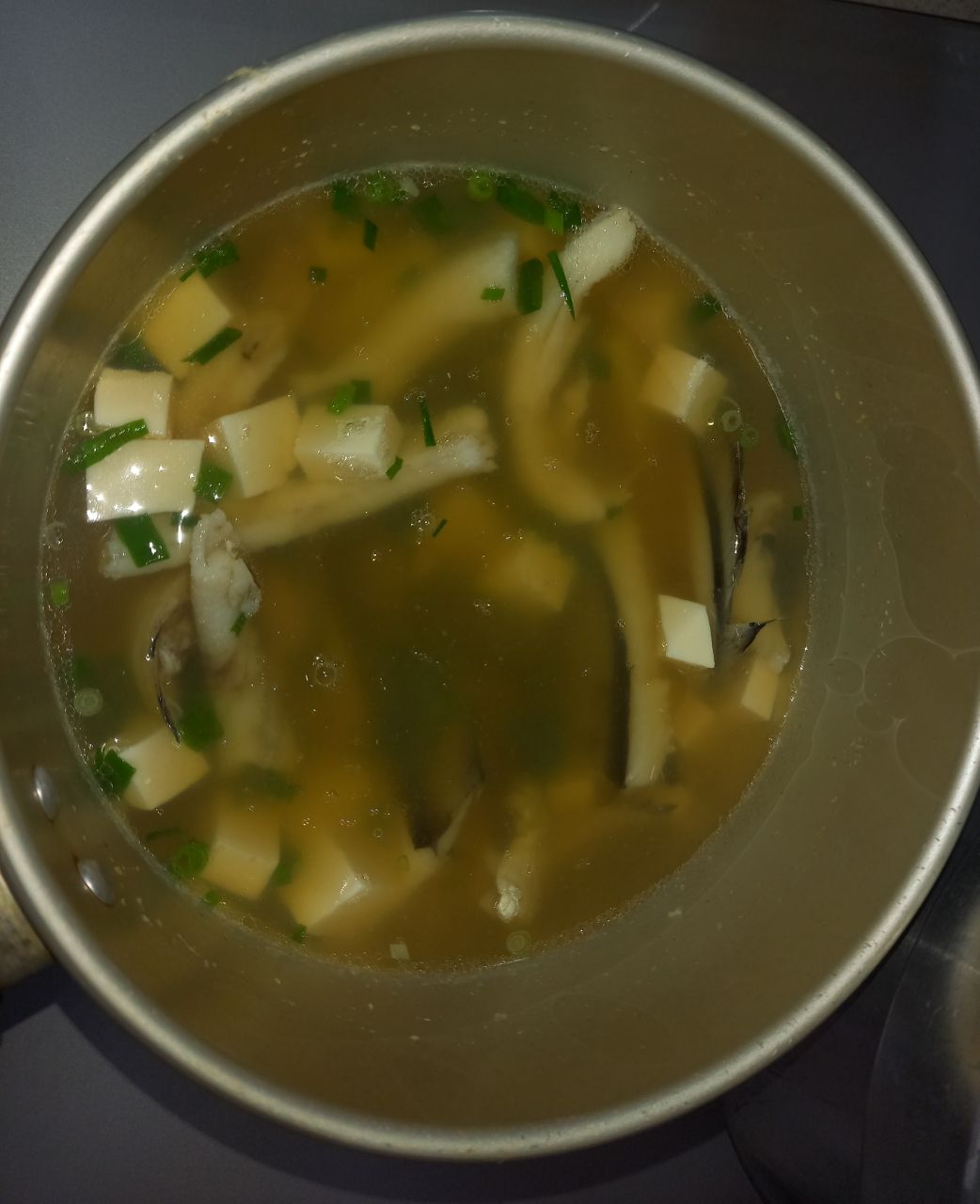アラで、出汁とって、豆腐とネギのお吸い物造りました。