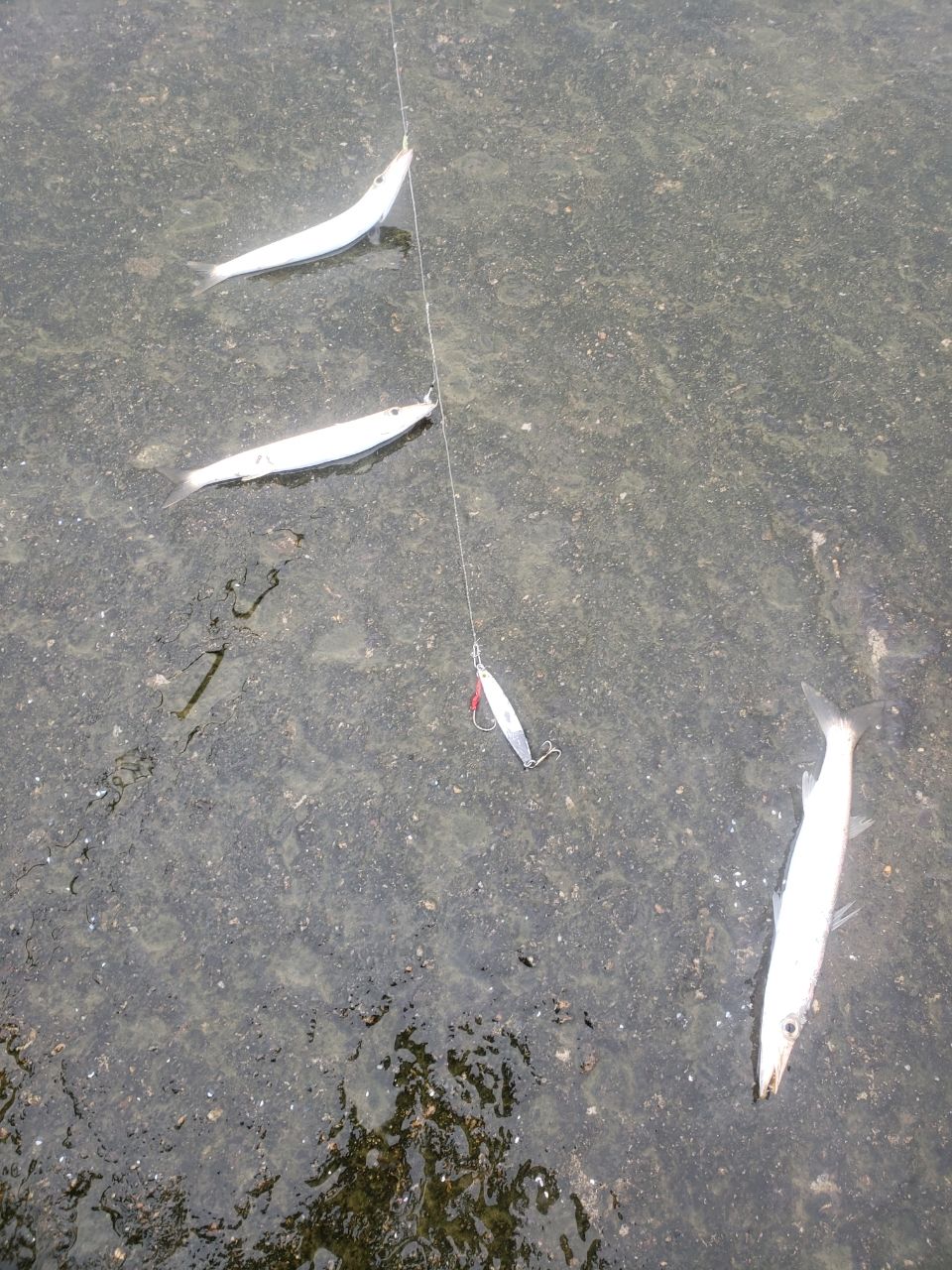 朝イチから🐟湧いとるわ♪前半サゴシ11匹サイズは40~50cm程。後半は30cmあるなし放置しても釣れる無限カマス💧大漁👍