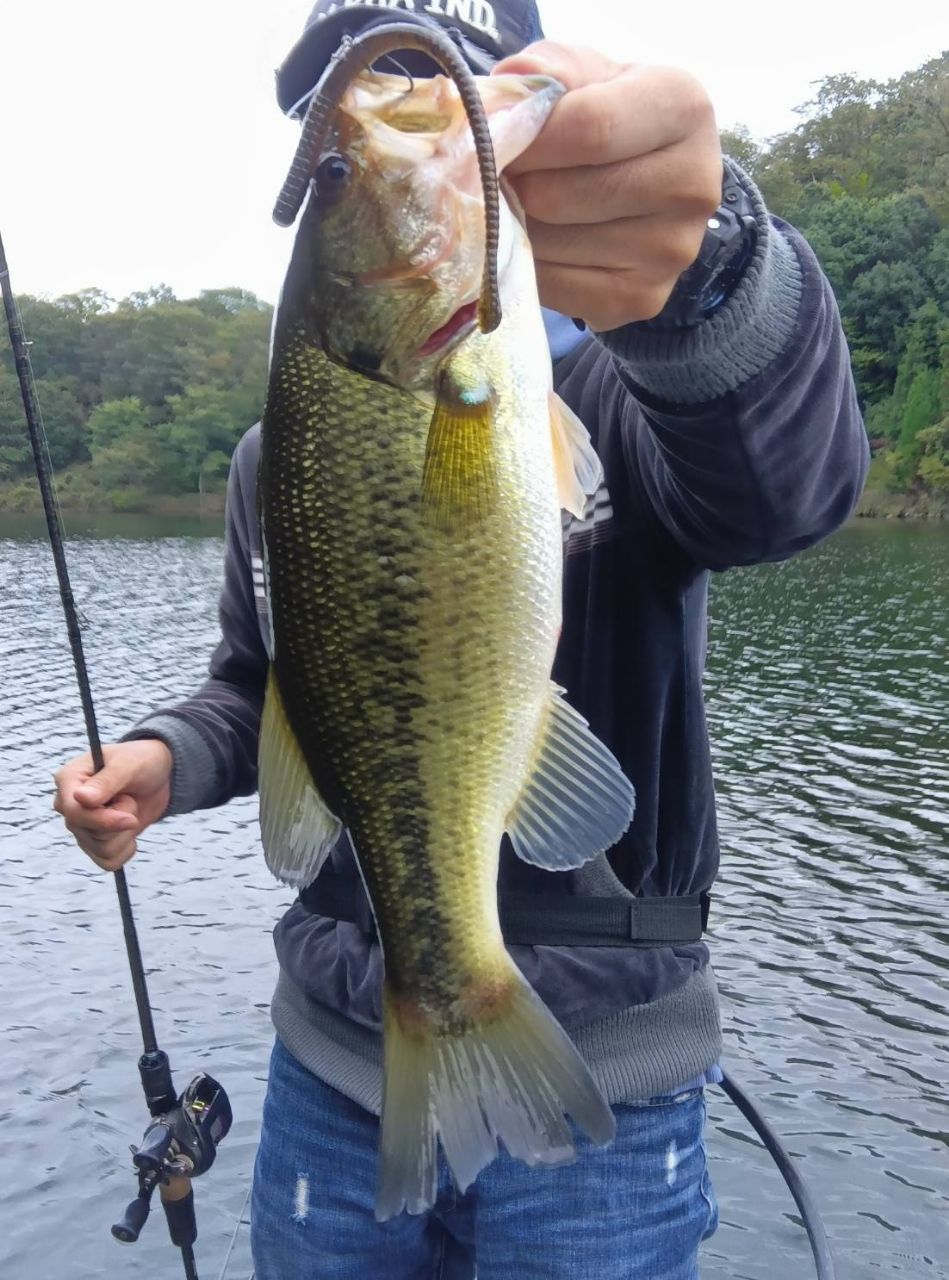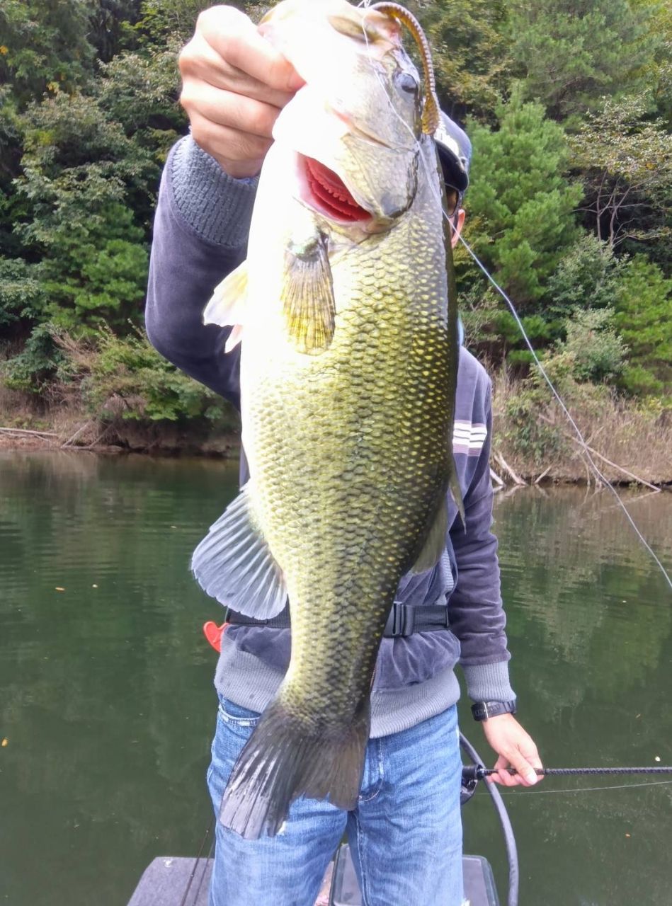 朝からトップ狙いでしたがなかなか釣れず…昼ぐらいからボトム攻めに変更すると、藻が絡むエリアで30センチ後半が釣れ始めたました。秋が深まって食いだめを始めたバスが、ボトムでエサを待っている様な感じでした。