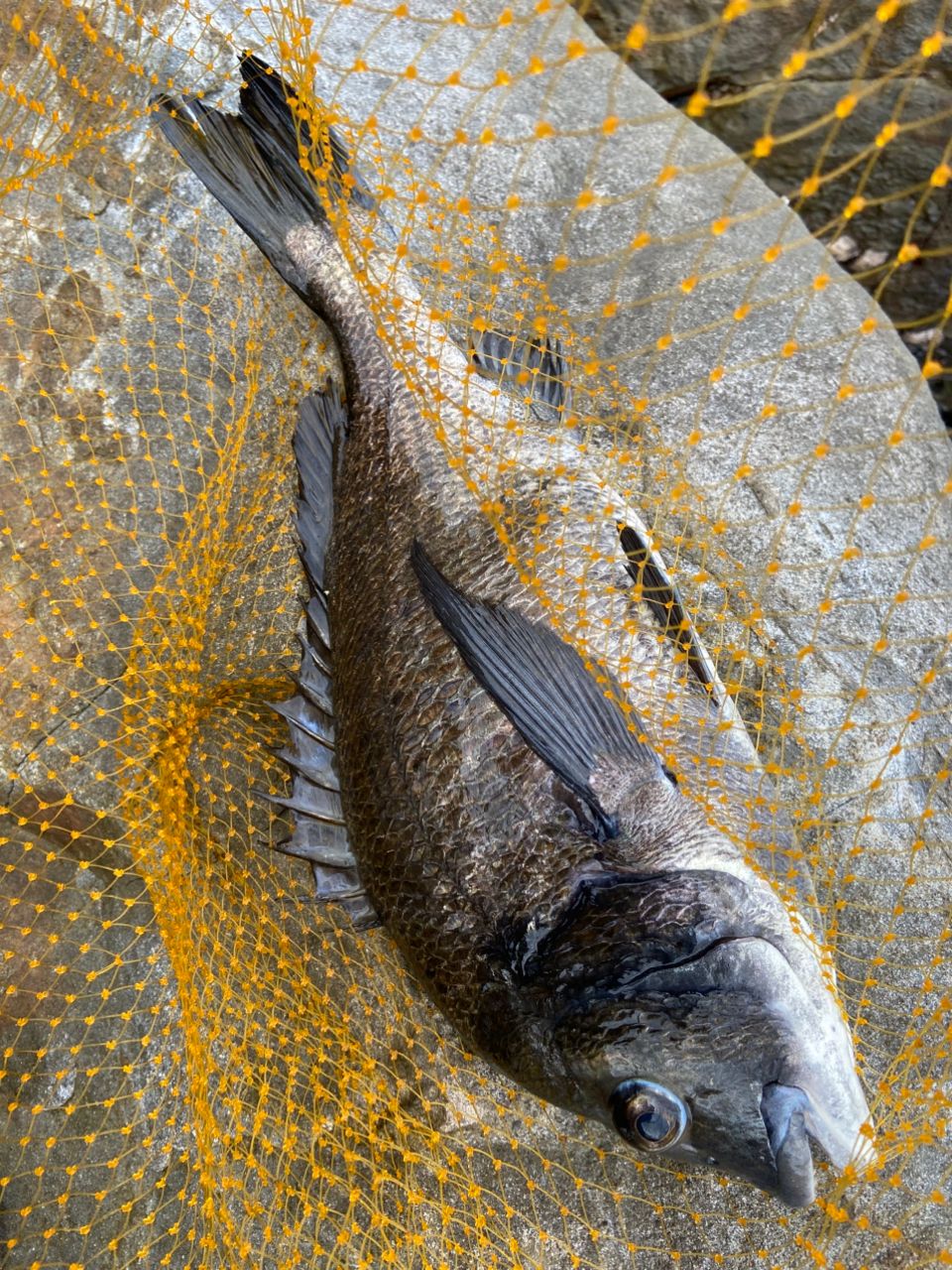 MAX39cm。惜しい。取込みは苦戦した。足元に3回は張り付かれた。前回は突っ込まれないようにテンションをかけ、根に当たった瞬間切れたようだったので、今回は張り付かれそうになったら緩めて魚に気付かれないように弱く引っ張って竿の復元だけで浮かすイメージ。魚が無抵抗で上がってくるような状態をキープ。泳ぎ始めたら止めるけどハリス傷だらけだろうから弱めに。繰り返してネットイン!正解だったのかな