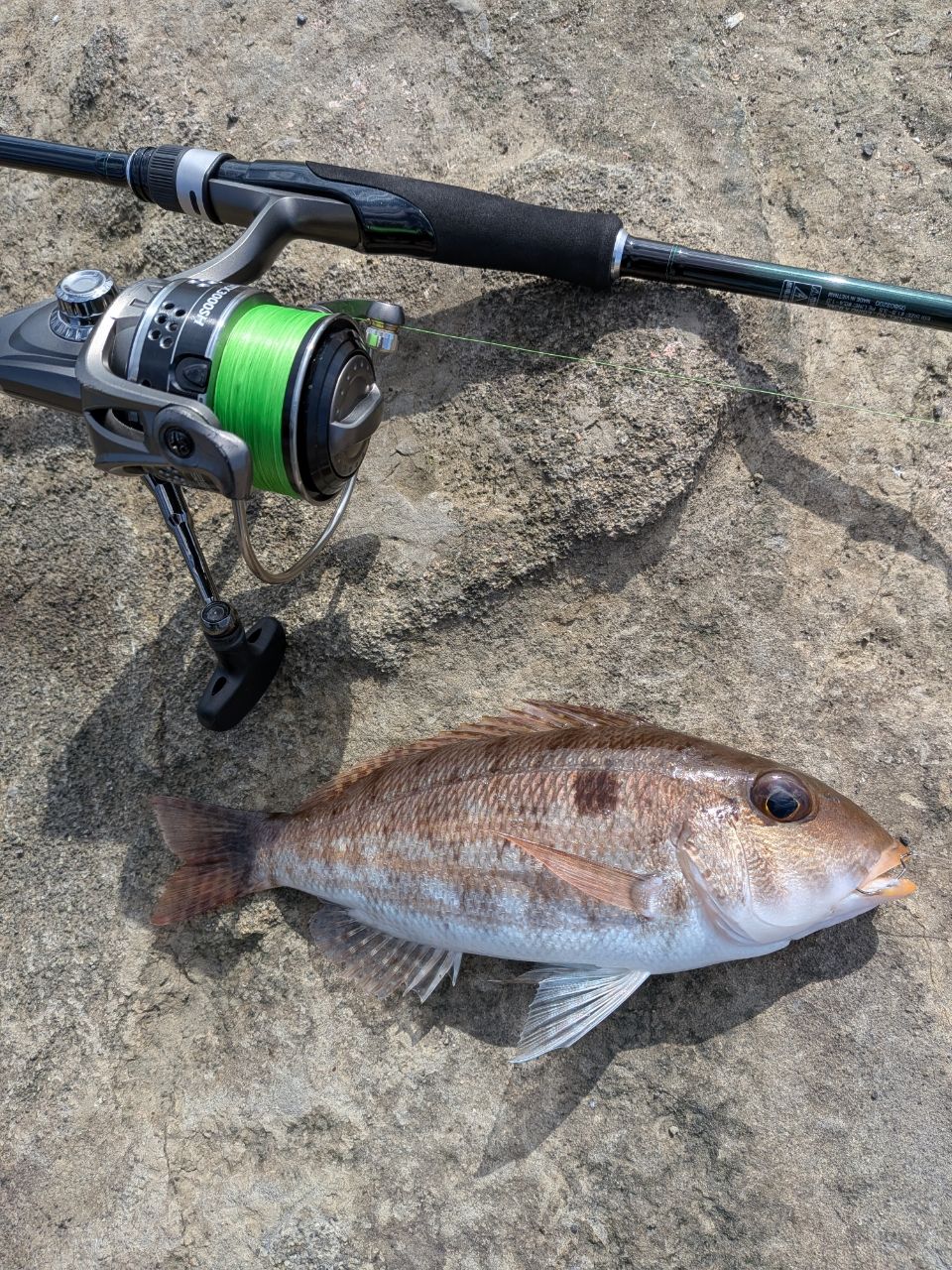 久々の釣行で、ロケーション重視✨ということで真昼間の城ヶ島へ👍小潮で昼間、潮は全然動かない時間帯なので、イカ短+ビフテキリグでロックフィッシュ😁開始早々にフォールで強い当たり🎯ゴンゴン強めの引き味で釣れたのは(多分)イトフエフキさん😄体高もありなかなかのファイターでした✨✨