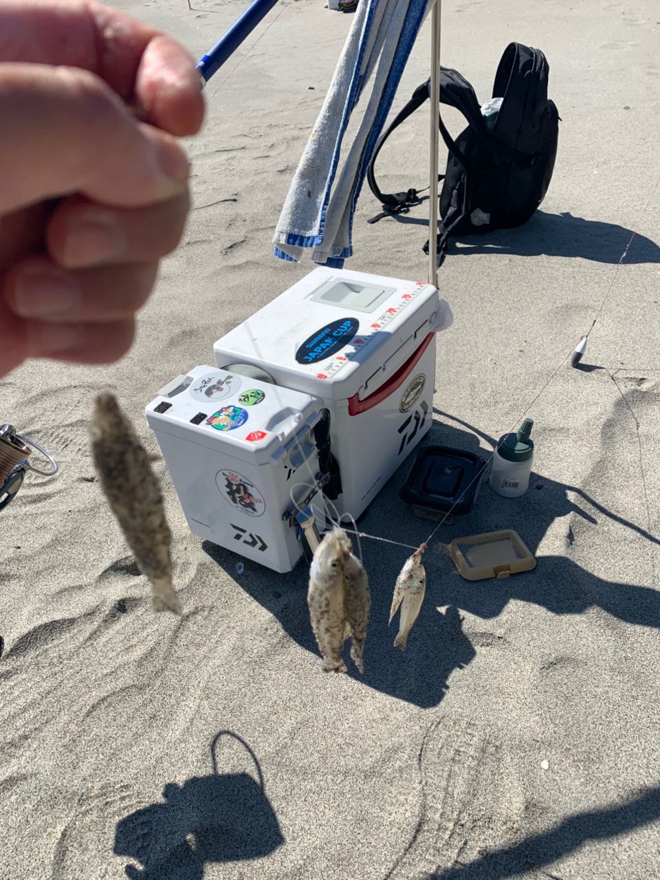 その後波口で数匹小さいキスを確保したけど、時間の無駄と風を避けるため東赤沢海岸に移動することにした。