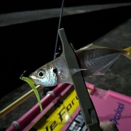 そんでも夕まづめのデカアジに比べちっちゃいこと!