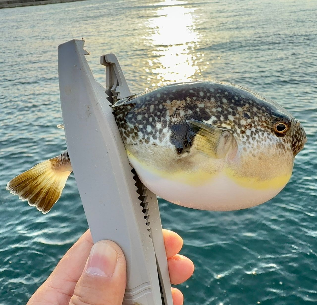夕方から釣り🎣開始して、まずはフグ🐡が釣れました🎣