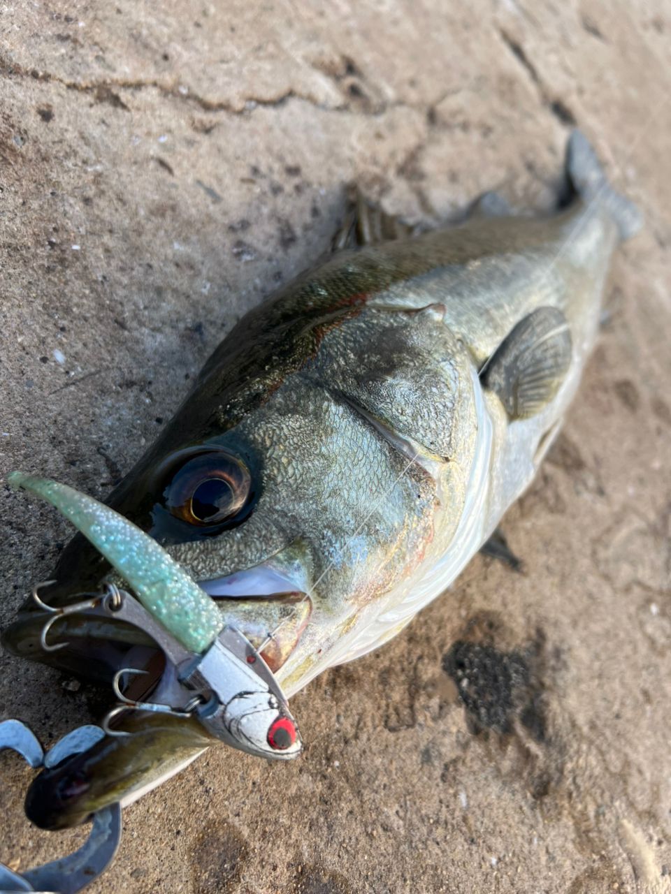 その後水が止まったり動いたりし、ルアー選びに迷走しましたが、最終的に若干流れている感じだったのでIJ-22を船の際に通すと60upのナイスシーバスが飛び出してくれました😆
