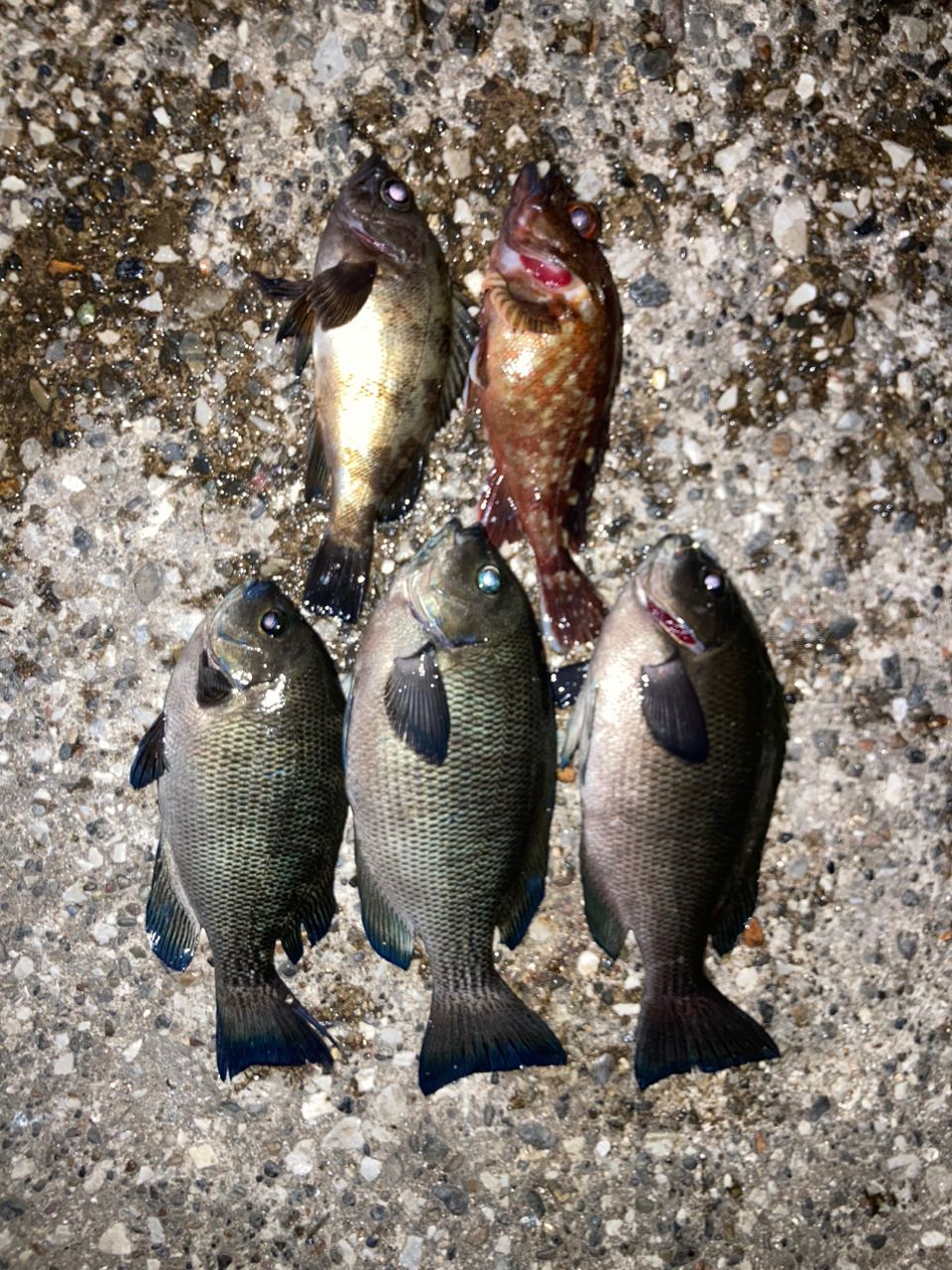 コマセ撒きながらウミタナゴと遊んでたらメジナが寄ってきたのでトリック同調させて狙うと釣れました。ヘチ釣りではカサゴがたくさん釣れました