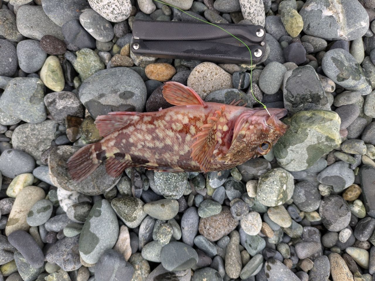 打ち上げられたトウゴロウイワシを泳がせたらデッカサゴがヒット🐟️