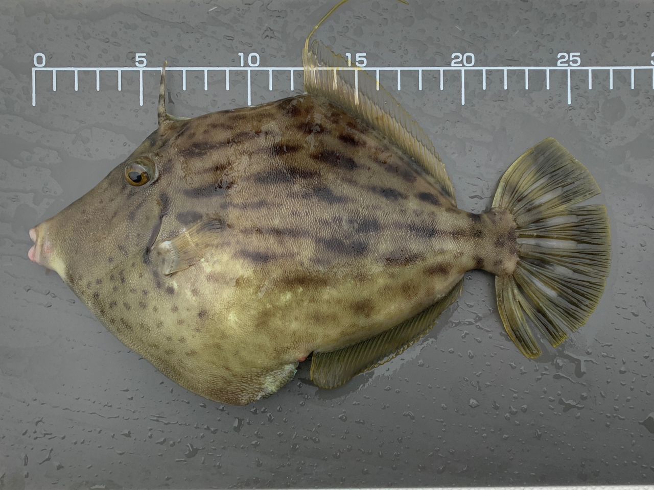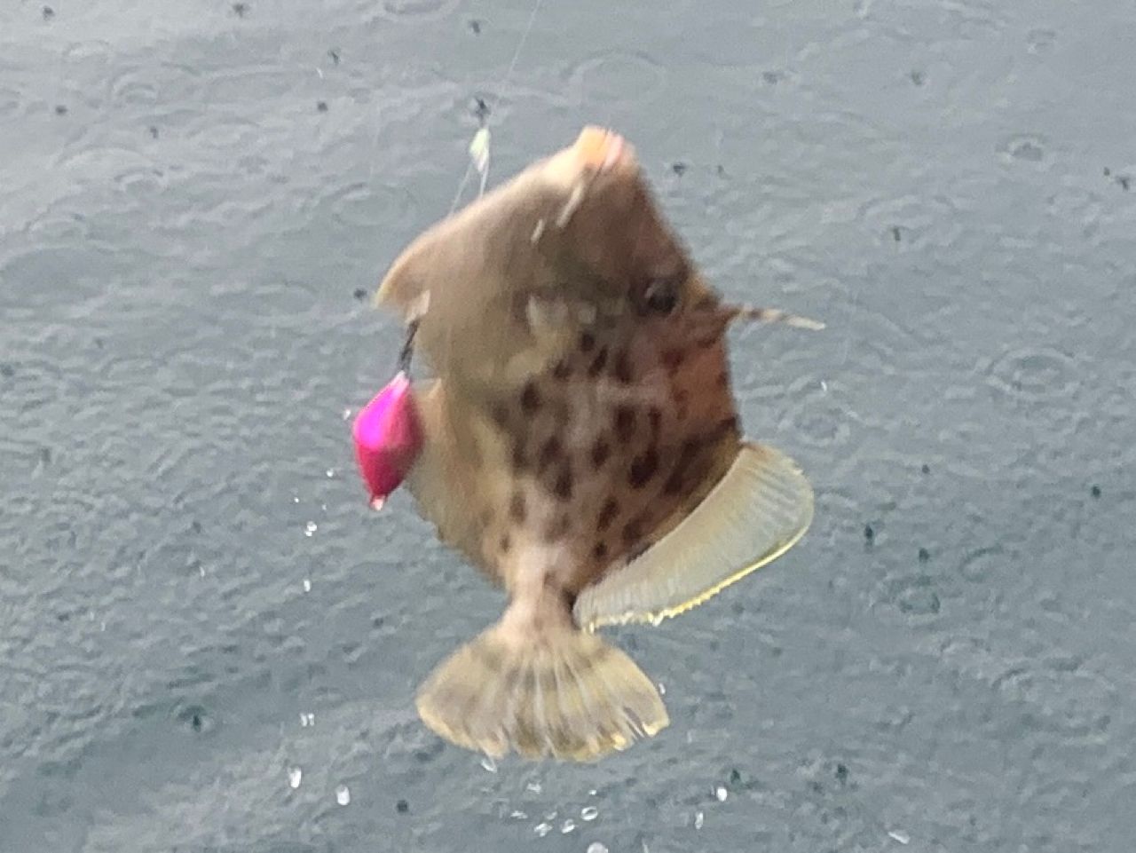 今日は肝パン丸ハギ狙いで出港して来ました🛥️💨朝から雨が降るあいにくの天候でしたが、エサ取り名人との駆け引きを楽しみ、狙いの肝パン丸ハギを釣り上げる事が出来ました👌