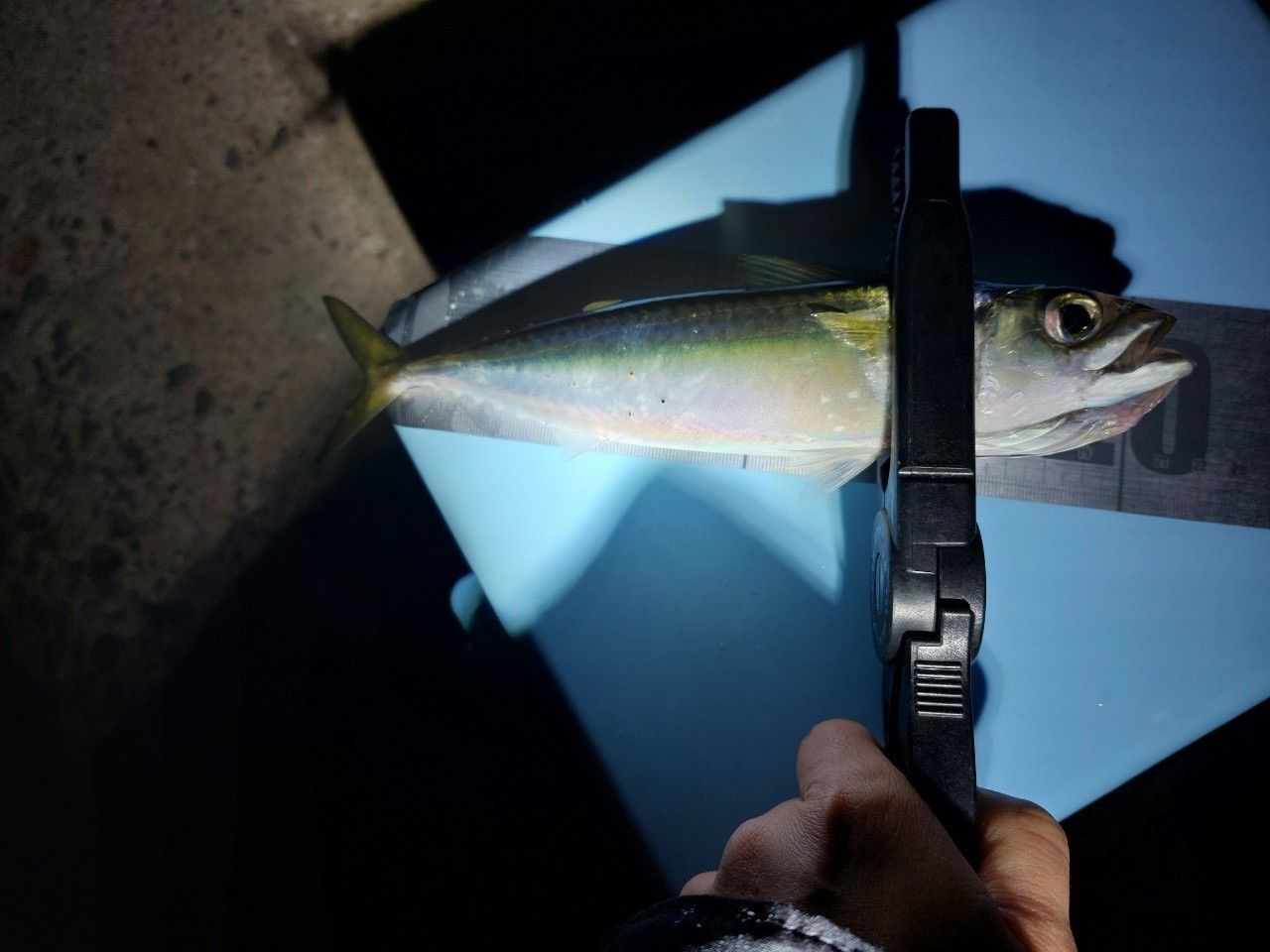 本日の釣果、アジングでキビレ1匹、小鯵4匹、サバ2匹