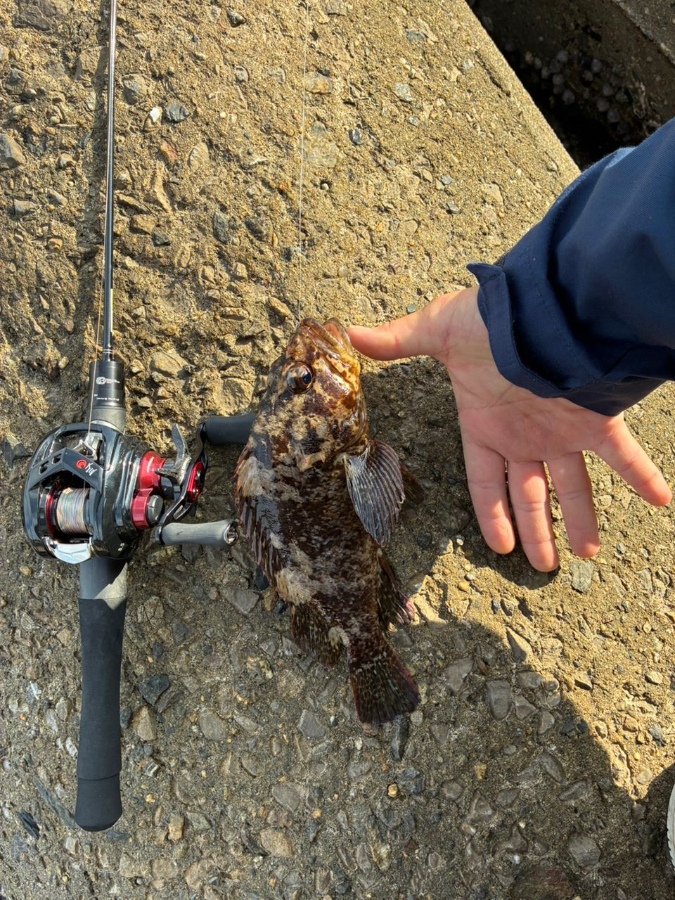 穴釣りで良型のムラソイがヒットしました。