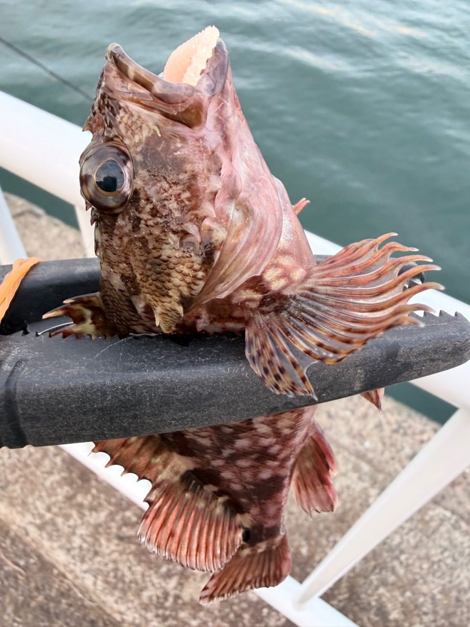 当たりカラー(ピンク)のワームを沈めて放置でチビカサゴ連発という状況がありました。