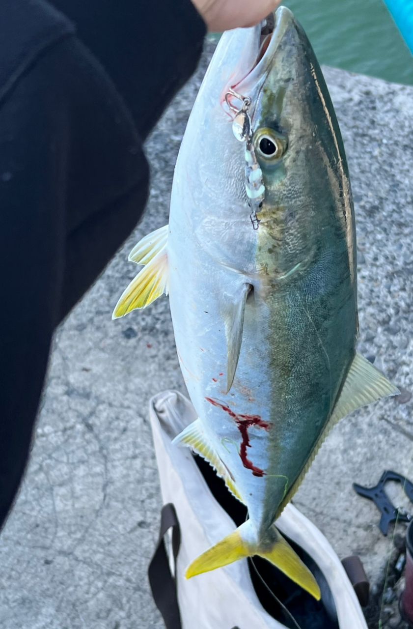 メタルマジックのふわふわか!とやってみるとこれが大正解。釣行時間鬼短縮の僅か40分。ちゃんと計測してませんが64cm位、3キロ前後のハマチ(大)まで釣れてくれました!