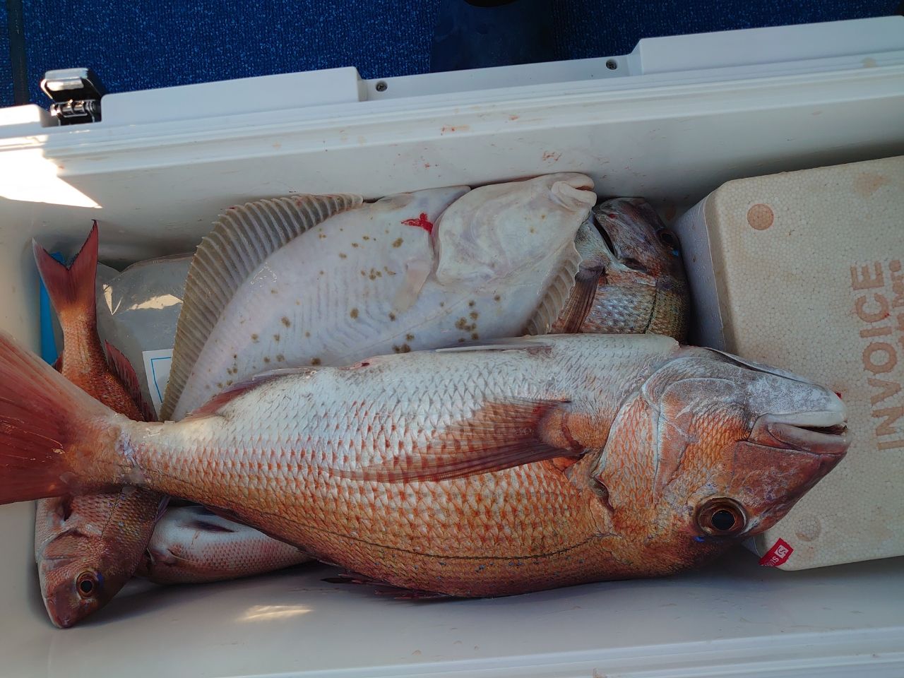 テンヤで真鯛17匹、他にはイシガレイやサバなど釣れました。