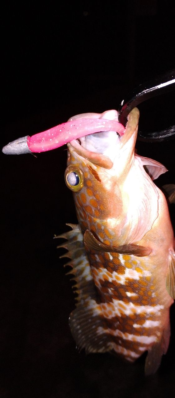潮止まりからの釣行でアジングは1回バラシたのみ。根魚狙いに変えてからもなかなか当たらず苦労しました。最後にDD8のちょっと大きめのダートで連発でした。