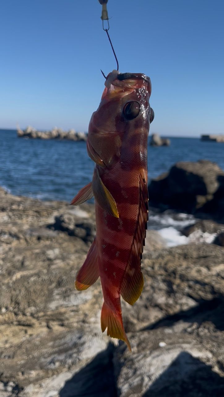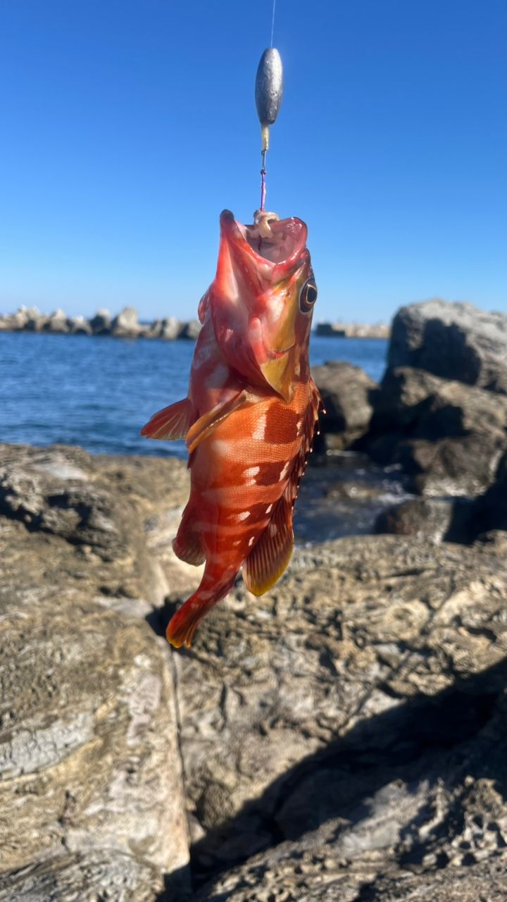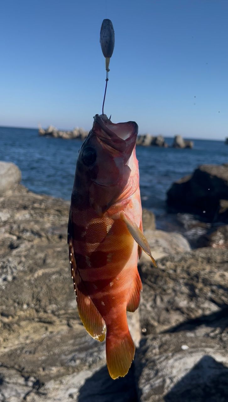 初島ではレギュラーサイズらしい、どデカいアカハタをゲット🙏Youtubeで見た仕掛け→「リーダー3m、中通しオモリの先にスナップつけてカン付きタチウオ針にサバ餌」を完コピしてマジで釣れました💪投げ竿でぶん投げて根掛かりしない様に竿をあおりながら巻いてくるって寸法です。ゴロタからちょっと突き出た足場の良い小磯があったので初ゴロタ、小磯ながらとても楽しめました☺️相方もぶっ込みブラクリ+サバ餌で25cmのアカハタをゲットしていました💪