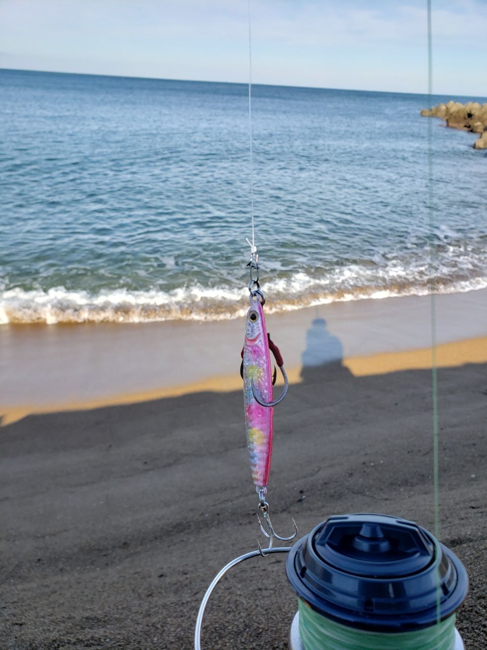 日が昇ってから1キャッチ1バラシ。4連敗記録が止まった😀ヒットジグはダイソーの強欲カラー(キャンディーのつもり)