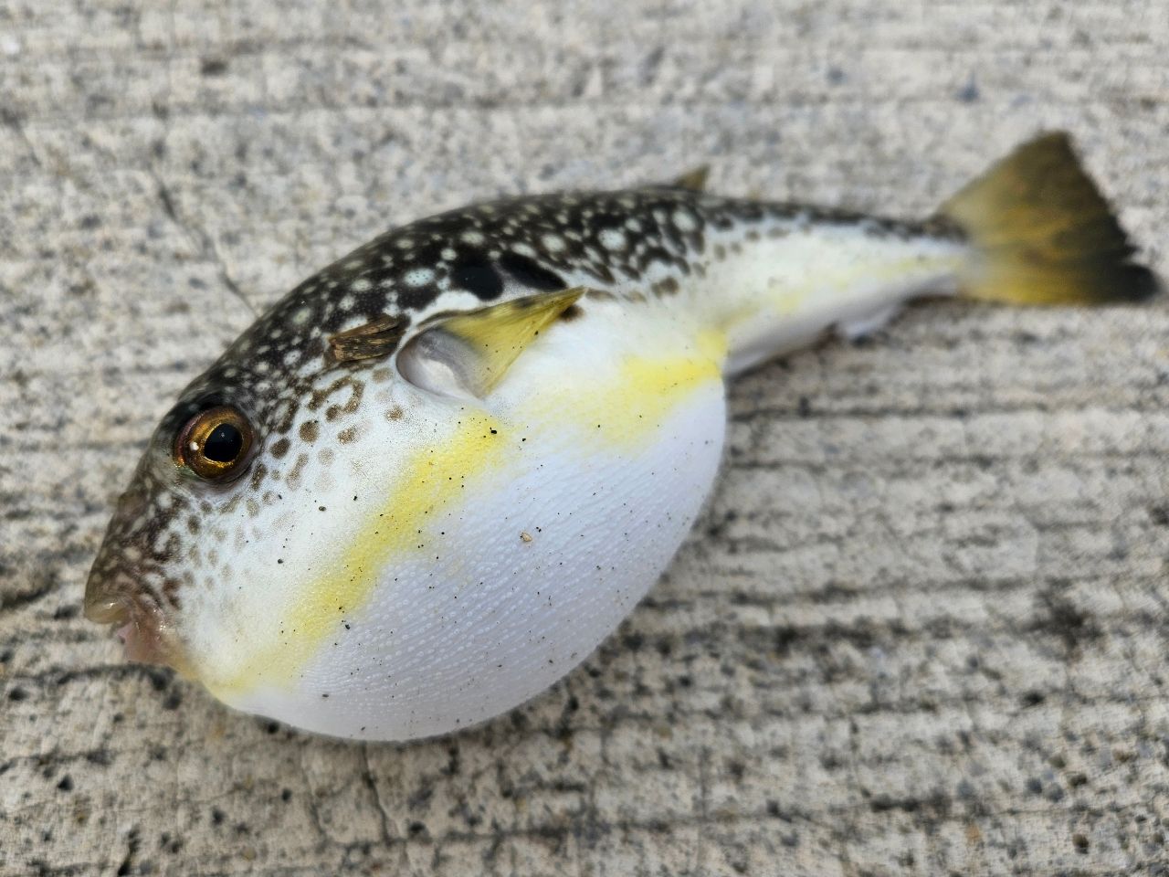 開始早々ヒット♪良い引きで元気いっぱいに横に走ったのでサバかな?と思って釣り上げてみたら何とフグちゃん🐡wwwww