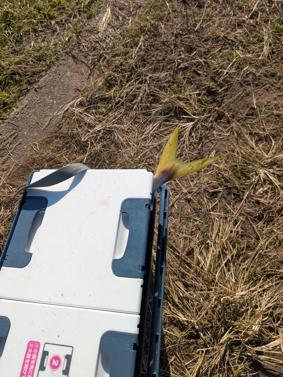 明るくなるころから開始。なんか、海面が賑やかだ、期待して明るくなってみたら20センチくらいのボラの大群でした。8回くらいスレでかかりました。フラットもタチウオも青物も反応がなし。スレのボラとダツのみ。一瞬、ナブラありましたが届かず。8時半までやって帰ろうと思ったら、ドン!と当たりが。ボラばかり見てたので、でかいボラのスレだと思いましたが、なんかそんなんではなさそう。バレないでと祈りながら約数分格闘し、上がってきた姿を見てびっくり。丸太のような魚体!自己青物記録を更新しました!クーラーボックスに入らん!嬉しい😄ありがとう!