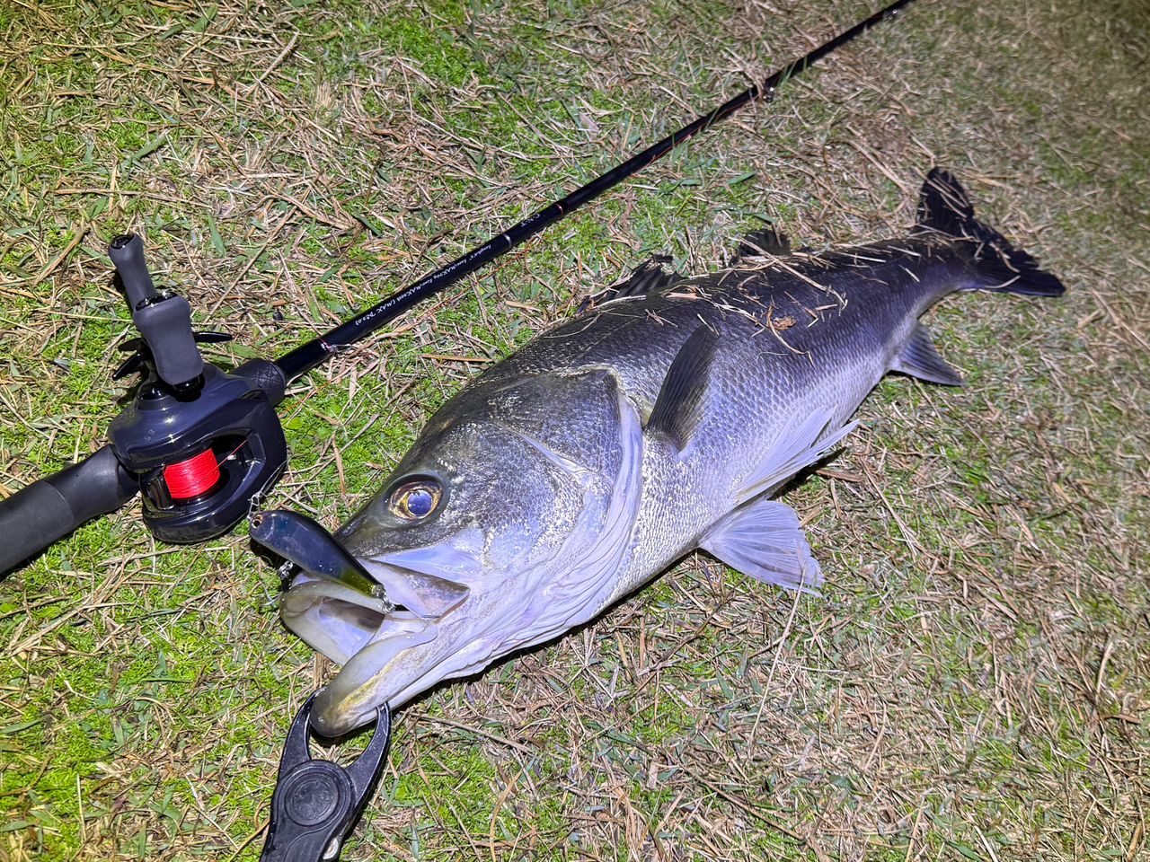 最後に岸際どダウンをワスプゆらゆら巻いてたら釣れました👍