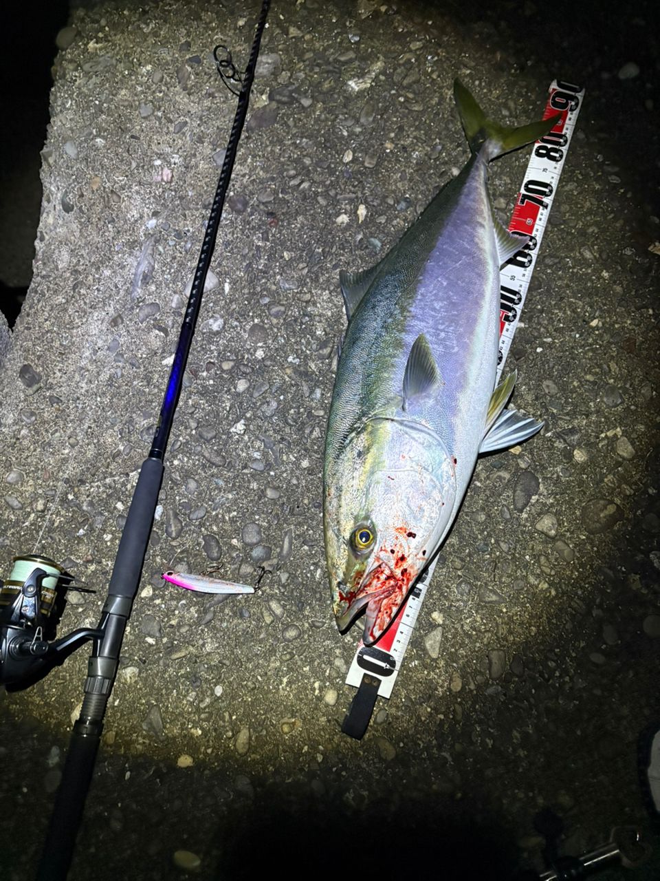 ゆうまづめもブリ!!サワラ上がってる聞いてテスト終わってサワラ狙いできたらブリ釣れた!正直ぶりじゃない!💢