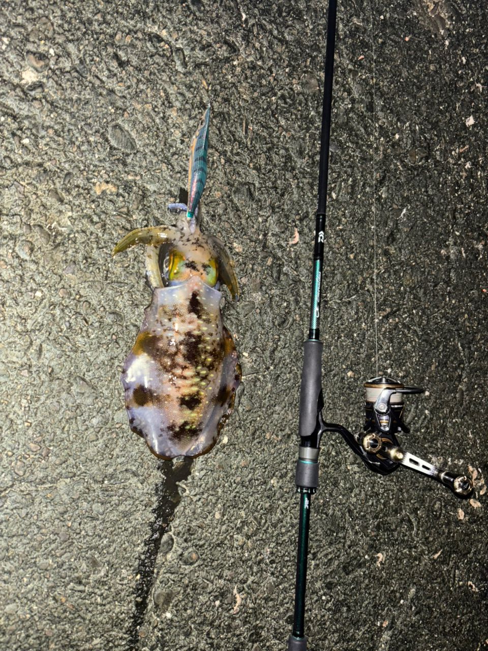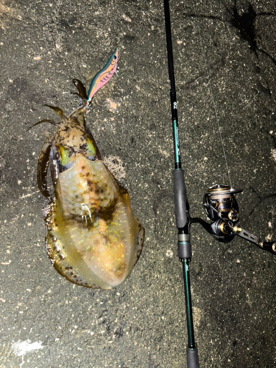 狙ってたサイズとは違いますが、小さいリリースしたの合わせてとりあえずイカちゃん釣れてくれました🦑