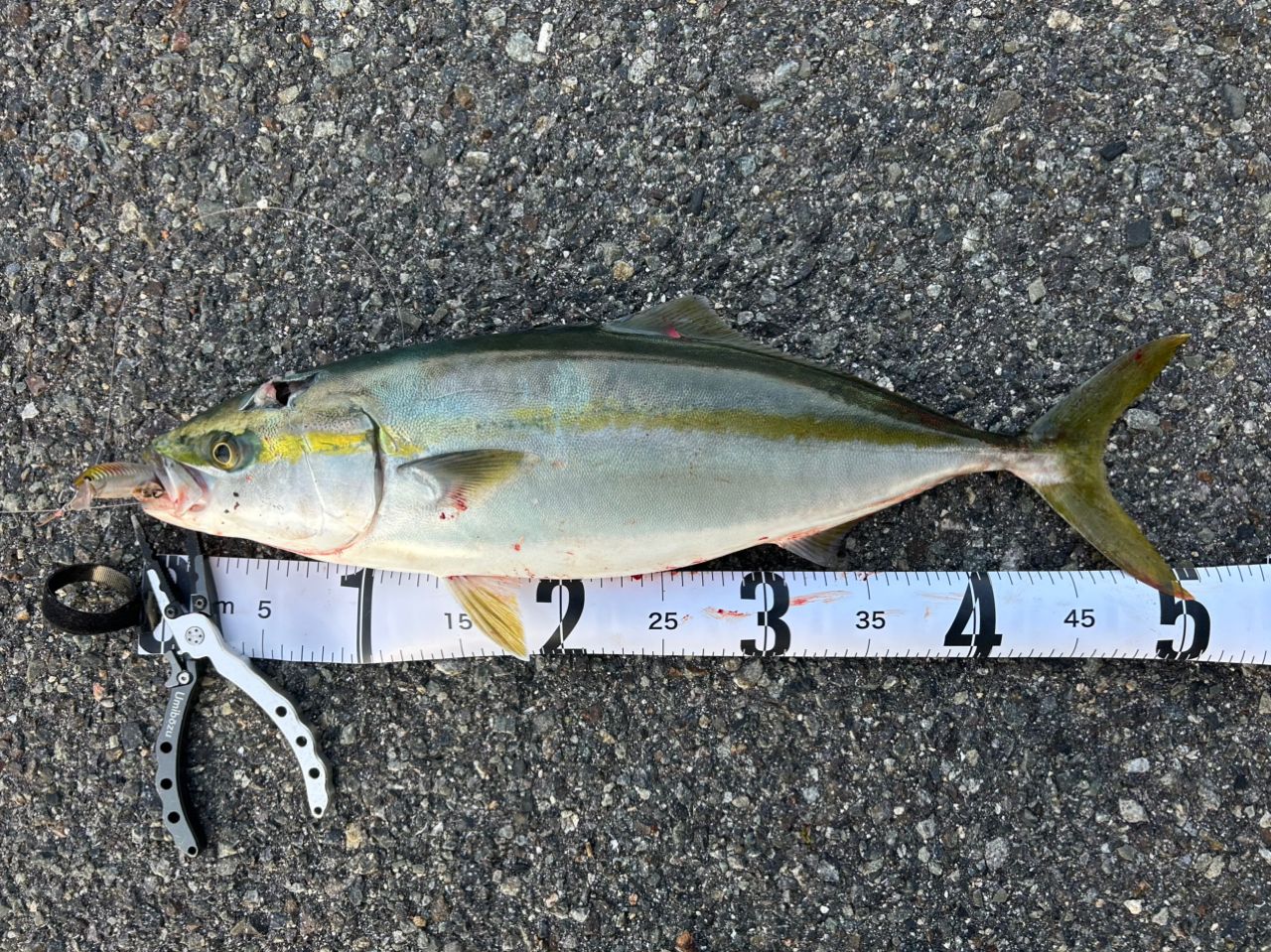 このサイズから抜け出せません。2匹目はリリースしたかったのですが、Gコンを飲み込んで出血し、無理でした。潮も風も良好な朝マズメがさっぱりで、潮止まりで反応があるこのポイントいつもの傾向でした。明日から気候が厳しくなるようですが、今年中にサイズアップしたいですねー。サワラも欲しいなあ。