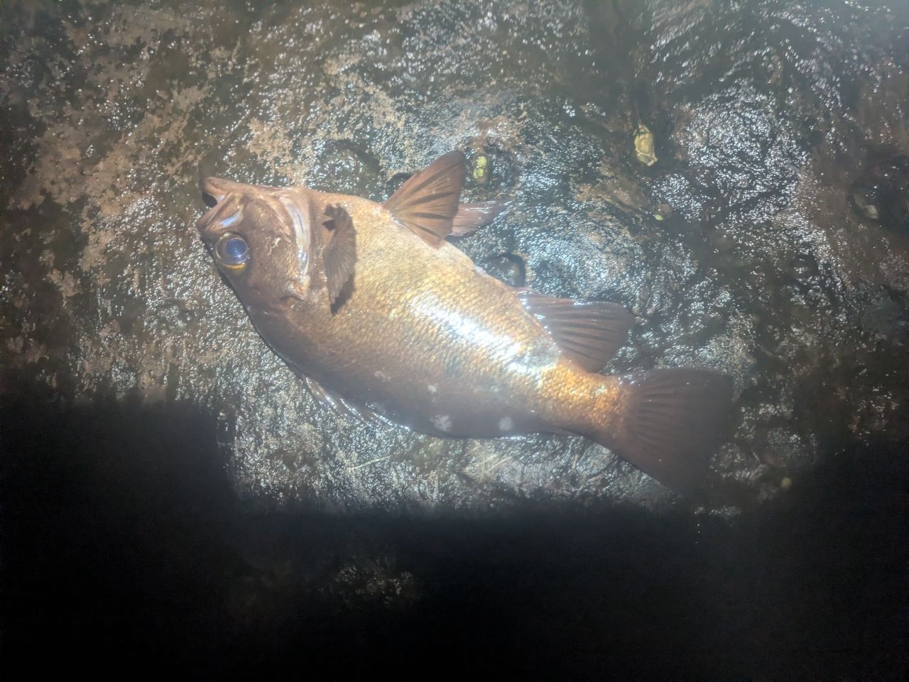 前に同行者が20センチくらいのメバル釣ってた事がありましたが、自分で釣るのは初体験!しかもデカい!マジうれしい