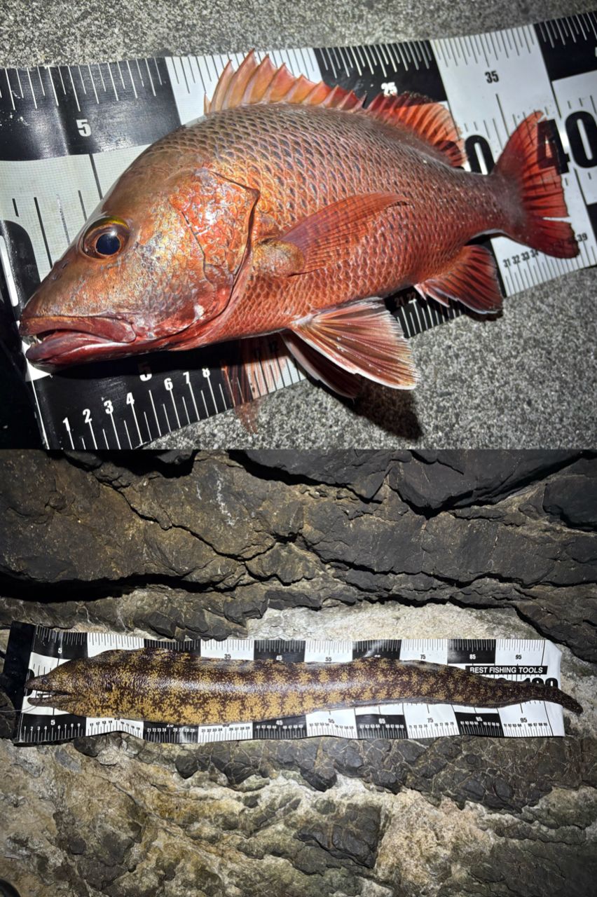 最初に小磯でぶっ込むと1m越えのウツボが(◎_◎;)、、、柔らかい竿だったので釣るのがメチャクチャ大変でした💦