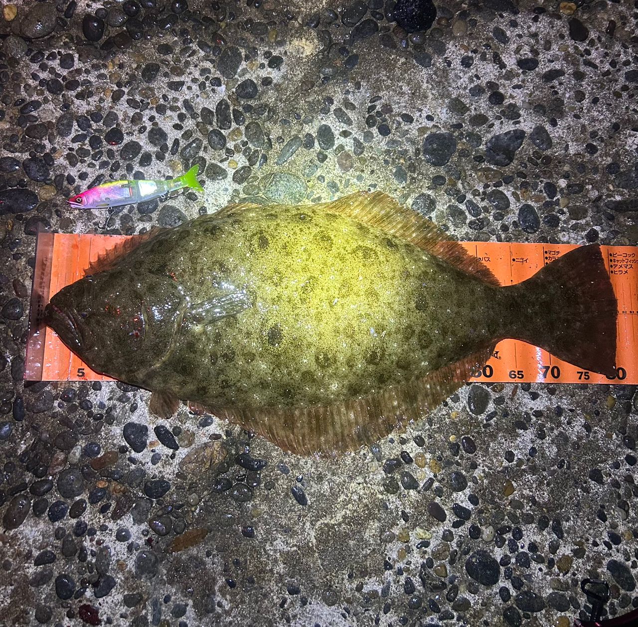 シーバスきたー!ん?違うヒラメ?!