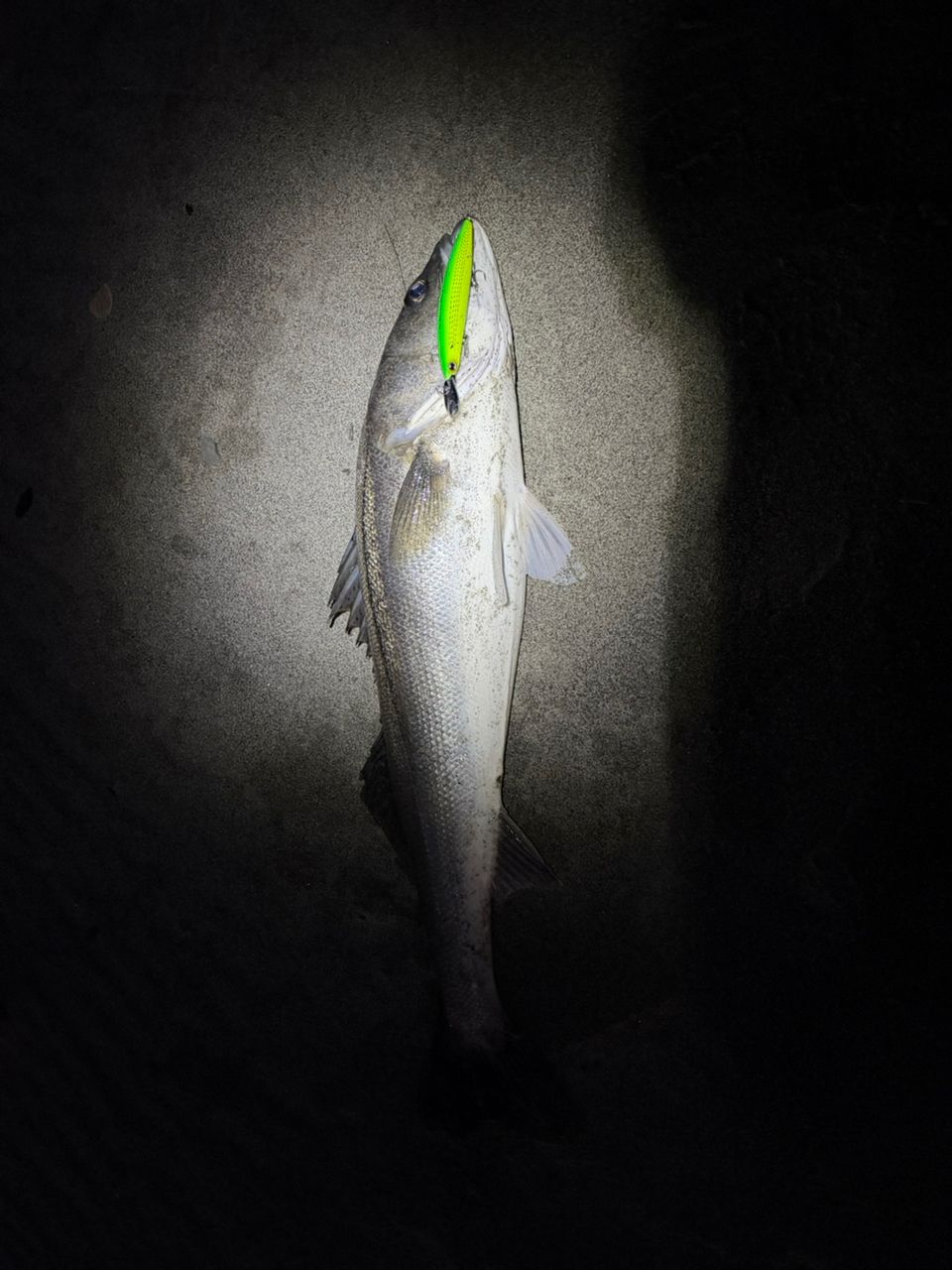と思いながらもとりあえずフッキングしたらまさかのランカーシーバス。
