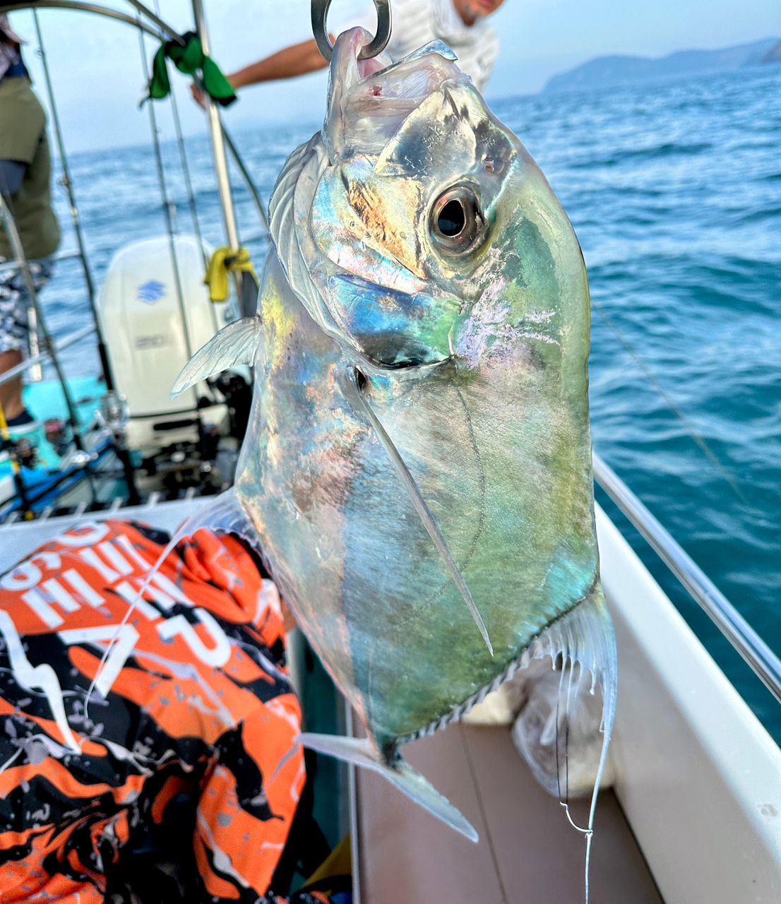 タイランド🇹🇭サメサン沖ジギングで朝からイトヒキアジの良型2キロ強が釣れました‼️🎣落ちパクで暴れなかったので根掛かりかと思いました😅タイのメーカーのスーパージグ80gです。安いしちゃんと釣れます👍