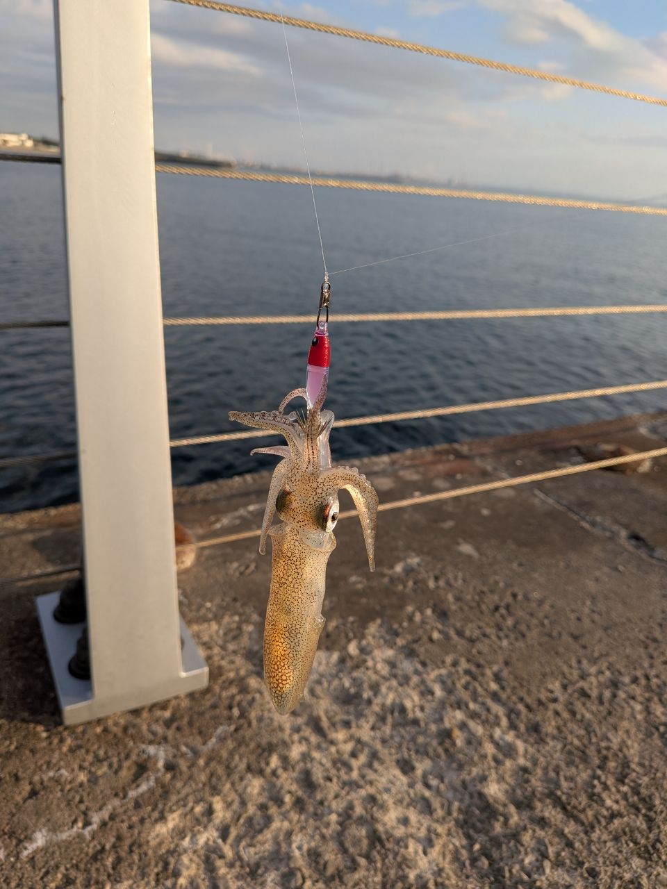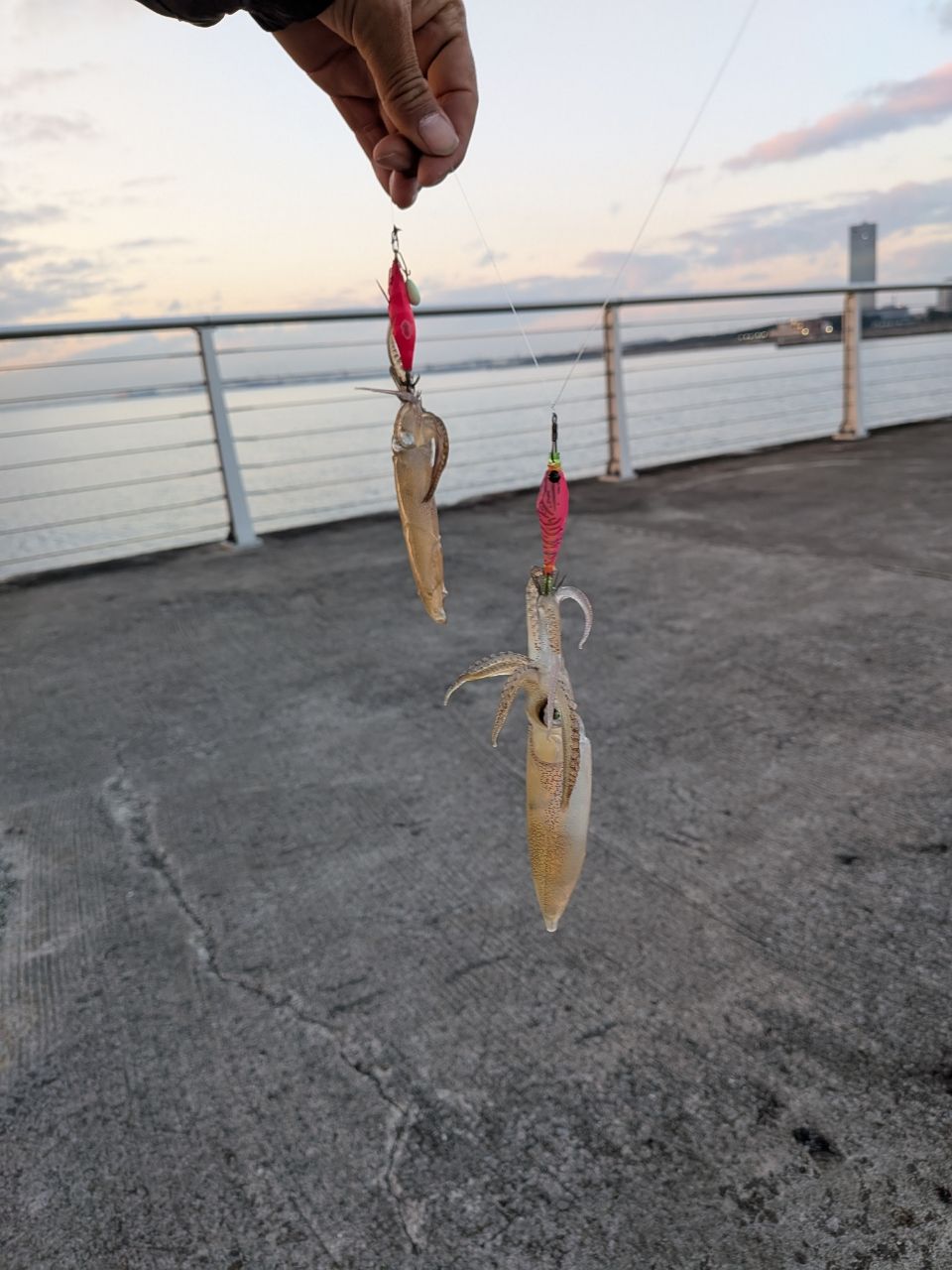 エギと3gのシンカー付けて枝スなしの4本仕掛けで。10杯