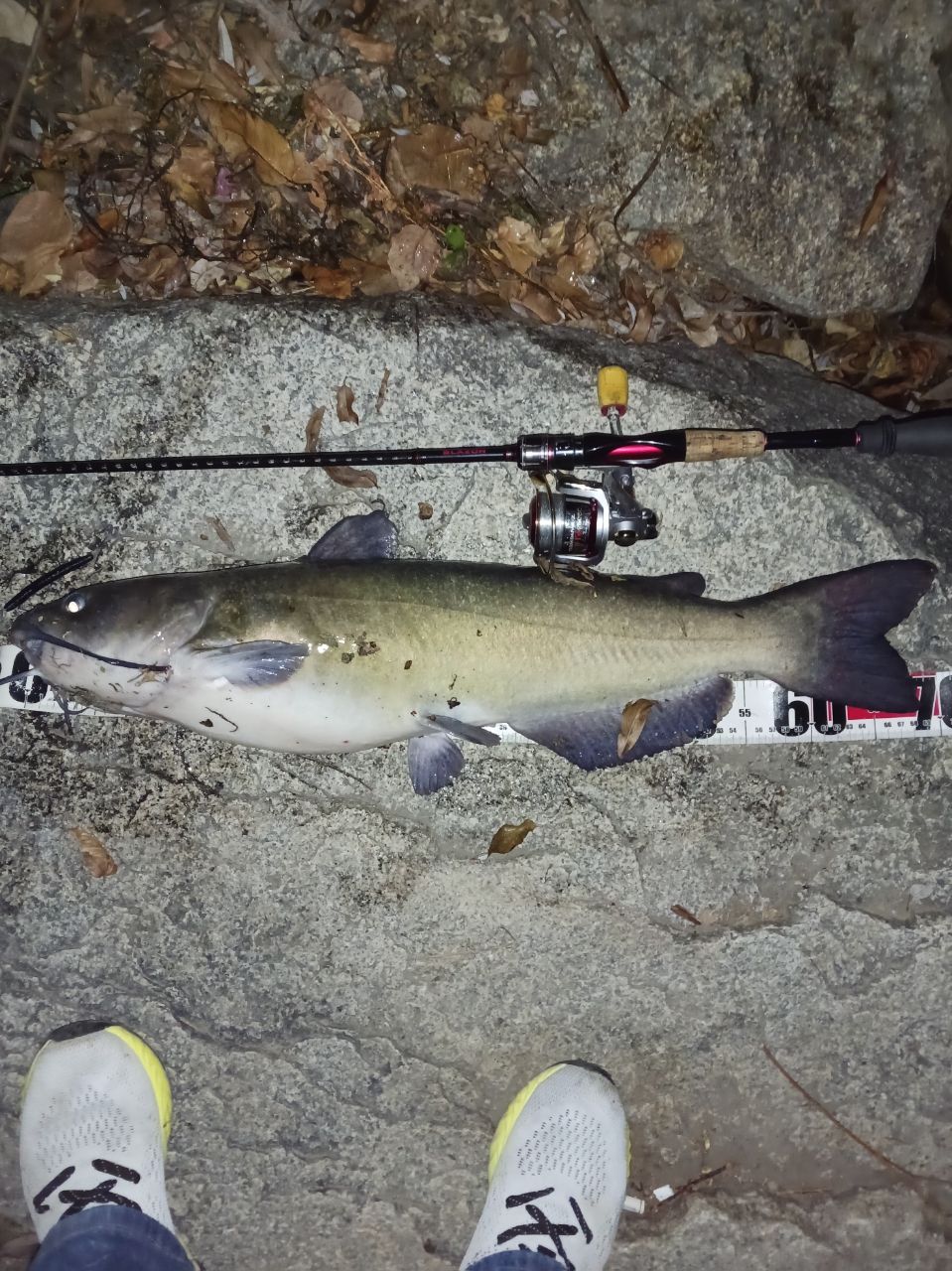 チャネルキャットフィッシュ(アメリカナマズ)71.5㎝。ルアー4ポンドラインバスXフロロカーボン